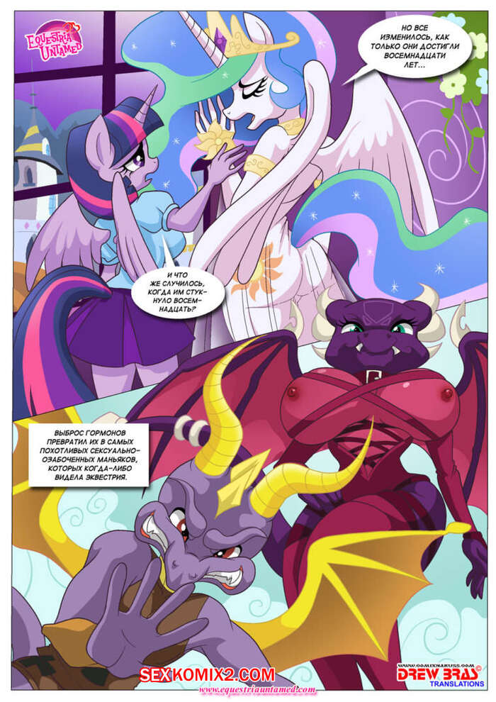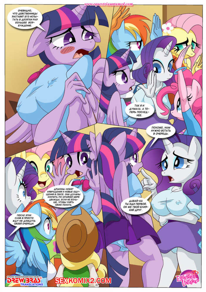 Порно комикс Вся мощь драконьей страсти Горячие сисястые красотки пони решили повеселиться со своим дружком с большим хуем. Они разделись перед ним и стали сосать его большой хуй, после чего дали ему себя хорошенько выебать.