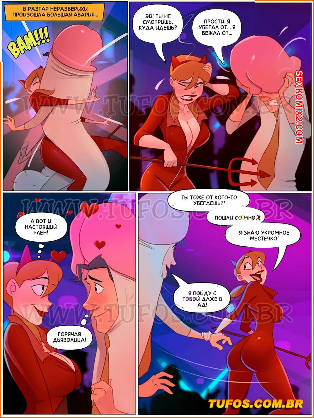 Порно комикс Похотливая семейка. Часть 100 Распутная костюмированная вечеринка. Tufos. Юбилейный выпуск комикса про знаменитую семейку из Бразилии, насчитывает 50 страниц. Всё семейство готовится к костюмированной вечеринке.