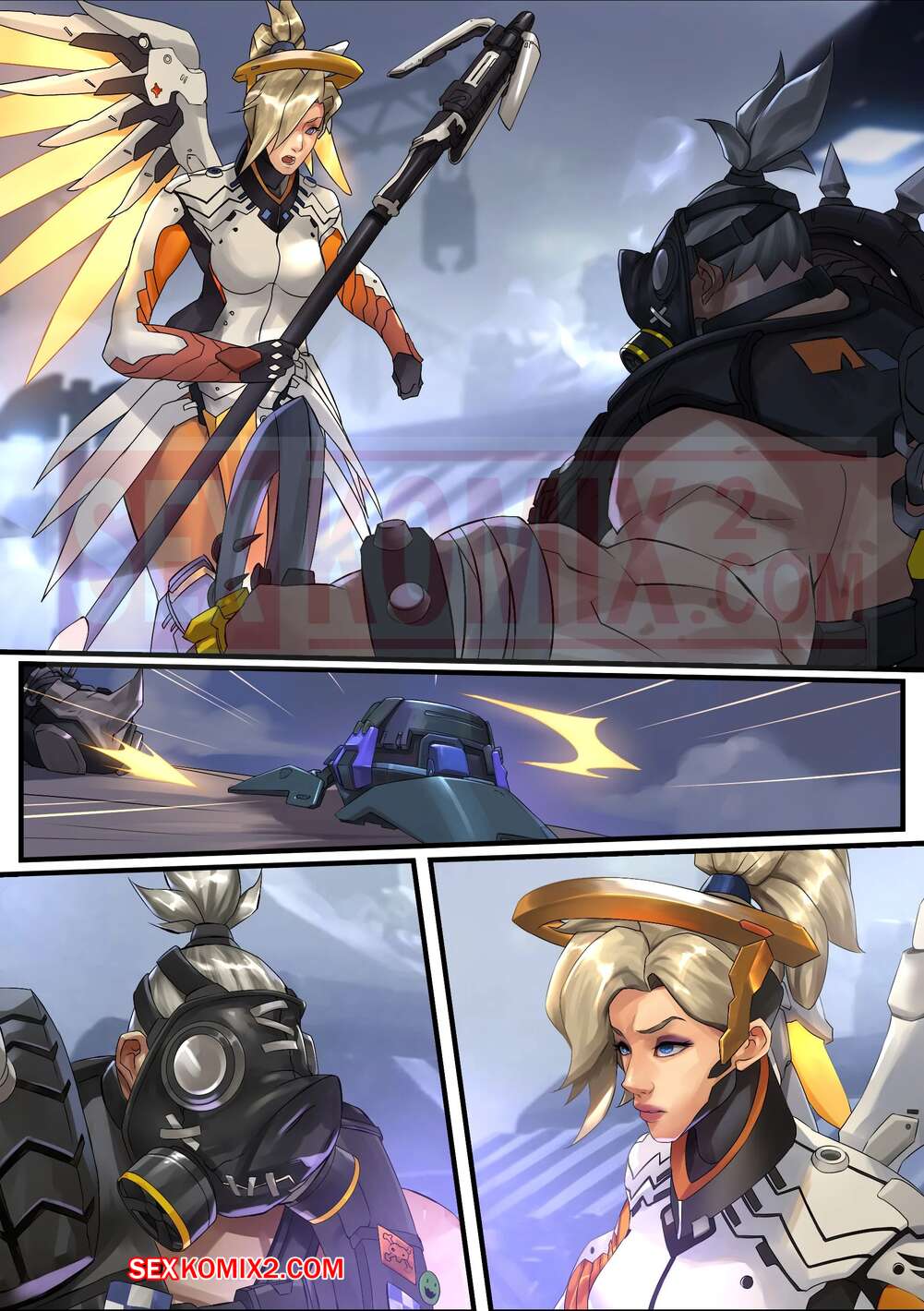Порно комикс Overwatch. Нет пощады. No Mercy. TSFSingularity Парень вселился в тело горячей красотки и решил этим воспользоваться. Он встретился с подругой девушки, чтобы изучить новую киску и классно потрахаться с помощью страпона.