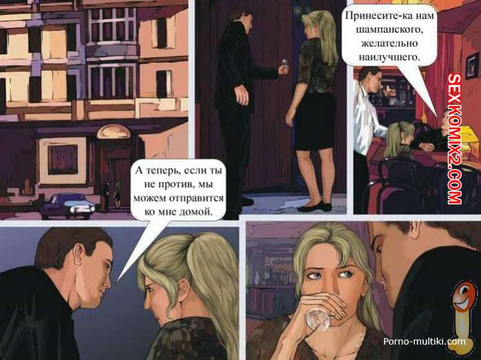 Порно комикс Знакомство Парню понравилась на улице горячая красотка блондинка и он решил с ней познакомиться. Они пошли с ней выпить, после чего парень хорошенько выебал сучку.