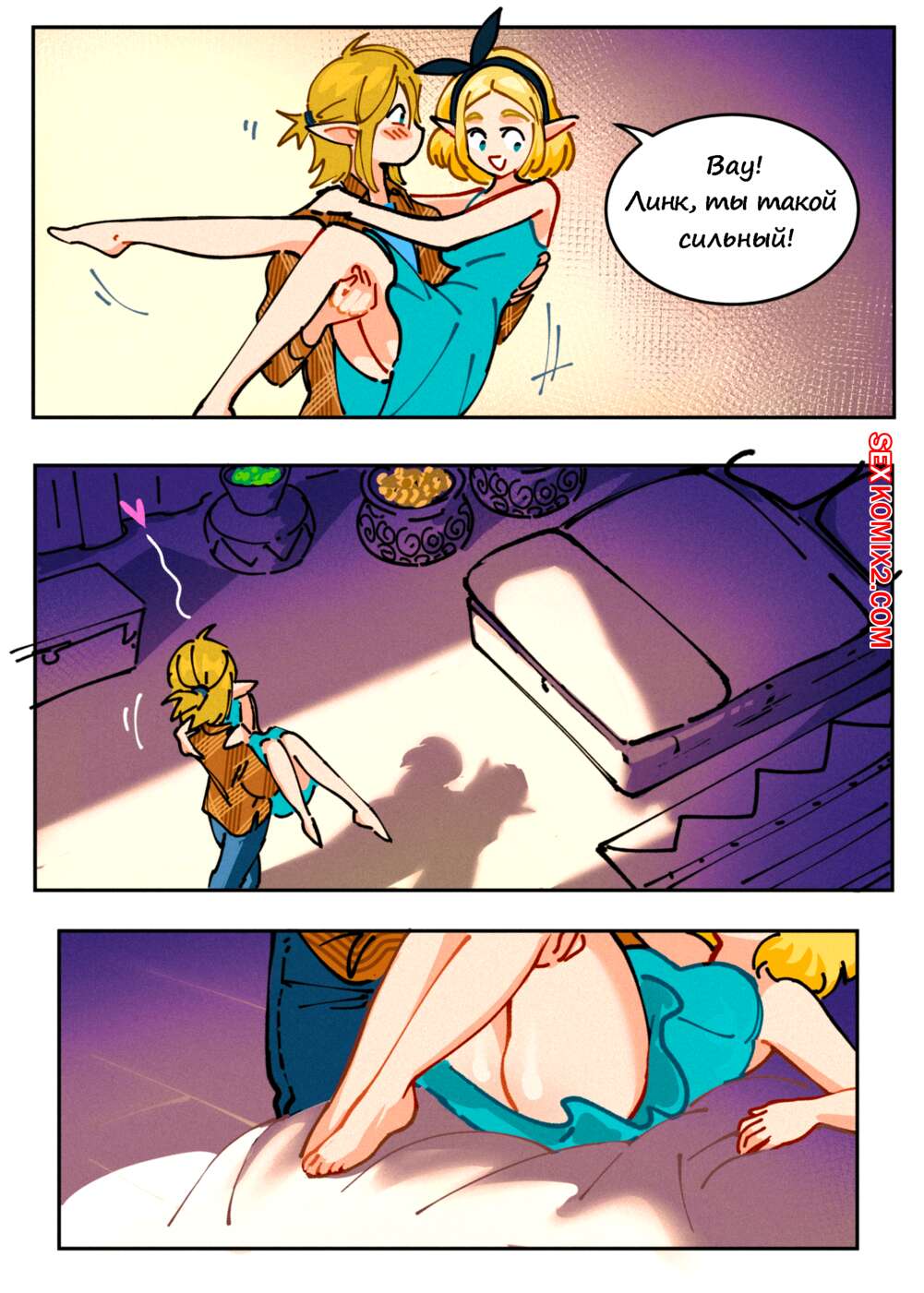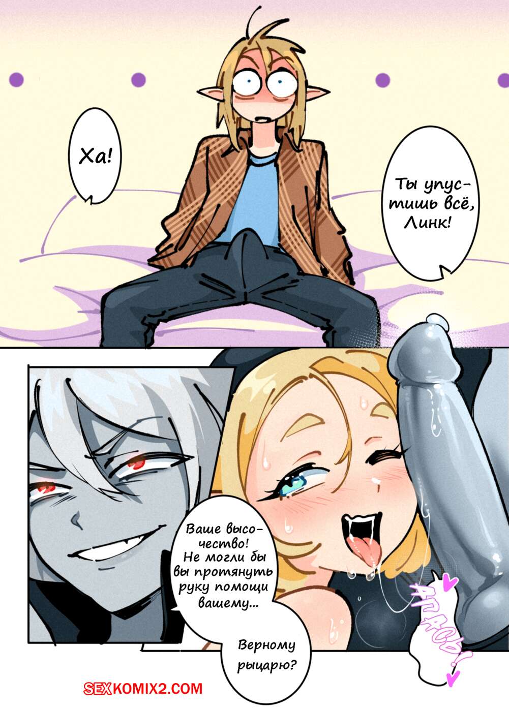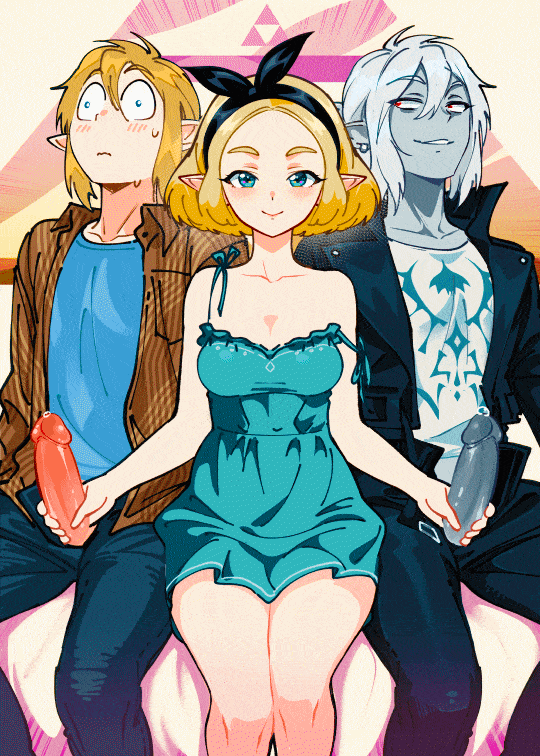 Порно комикс Трифорс Зельды. Zeldas Triforce. Развратная блондинка решила встретиться сразу с двумя парнями одновременно, но чтобы они об этом не знали. Когда пари прознали про ее план выебали красотку в два члена.