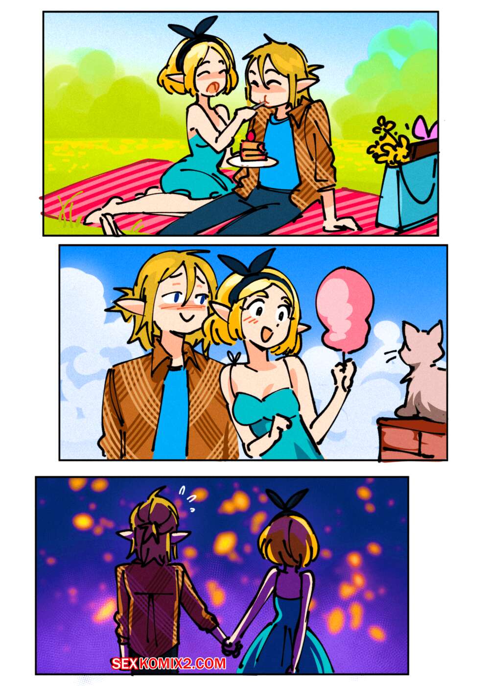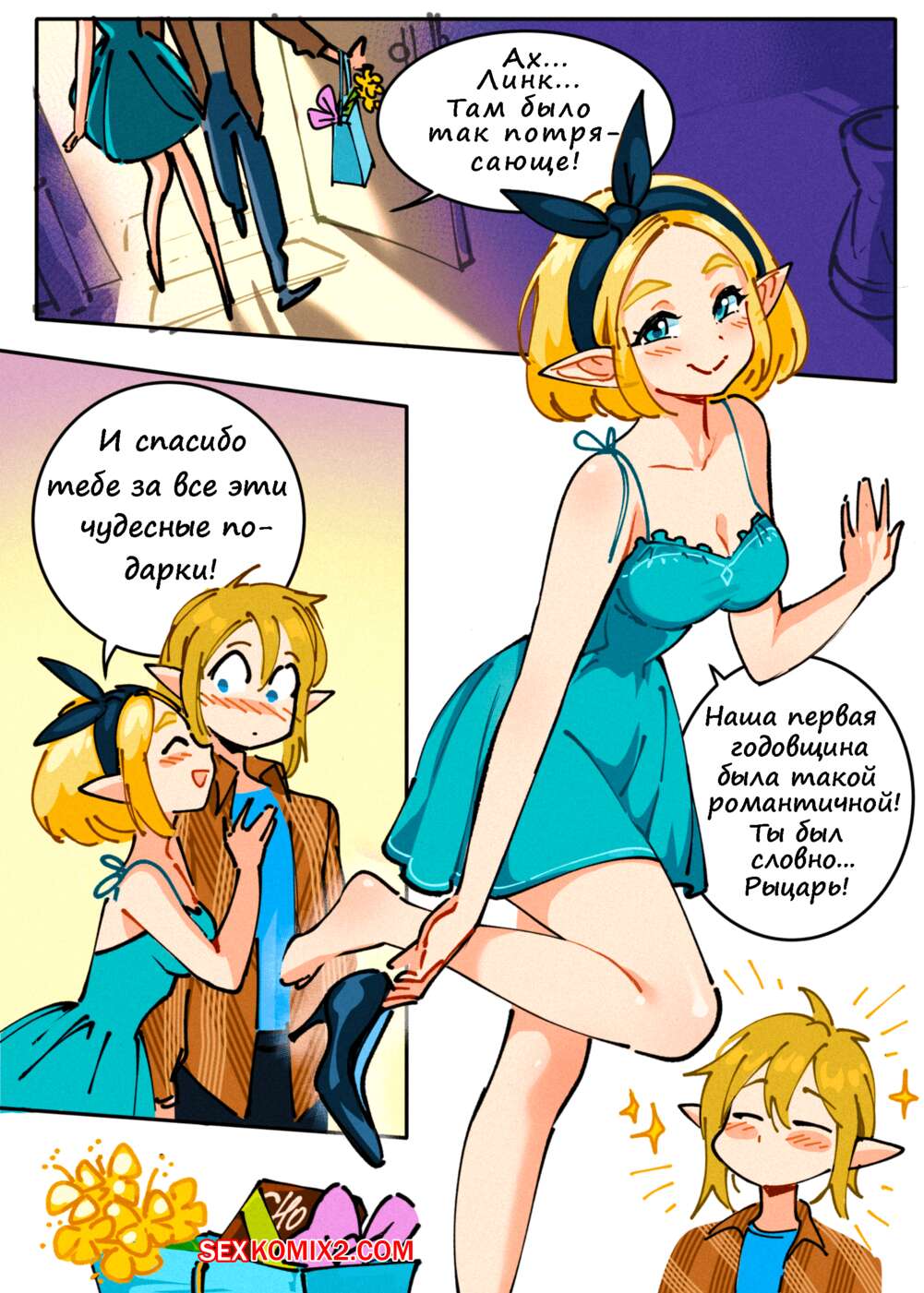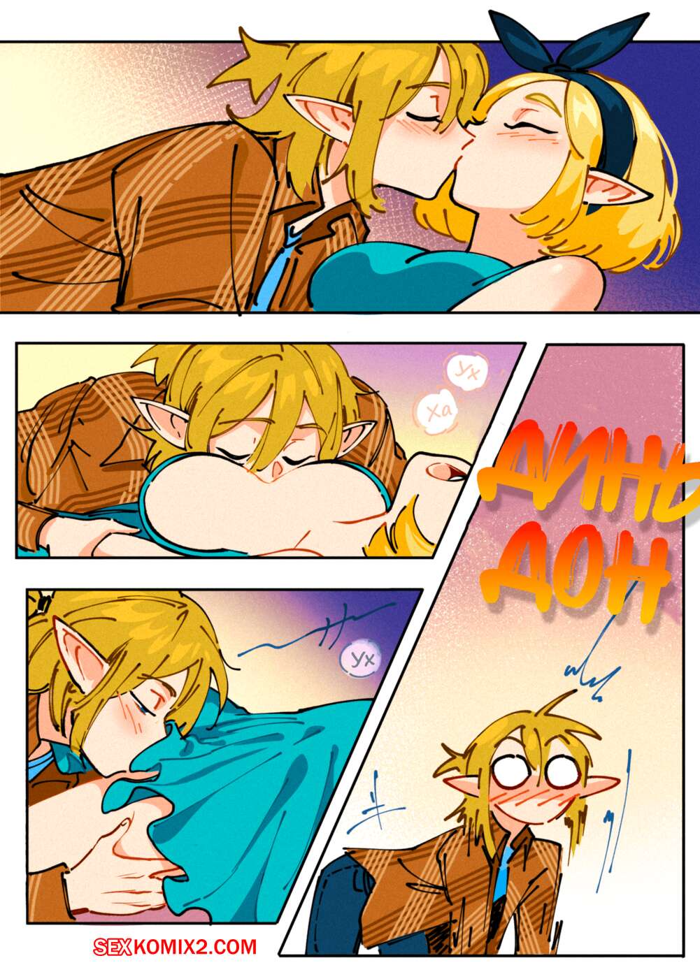 Порно комикс Трифорс Зельды. Zeldas Triforce. Развратная блондинка решила встретиться сразу с двумя парнями одновременно, но чтобы они об этом не знали. Когда пари прознали про ее план выебали красотку в два члена.