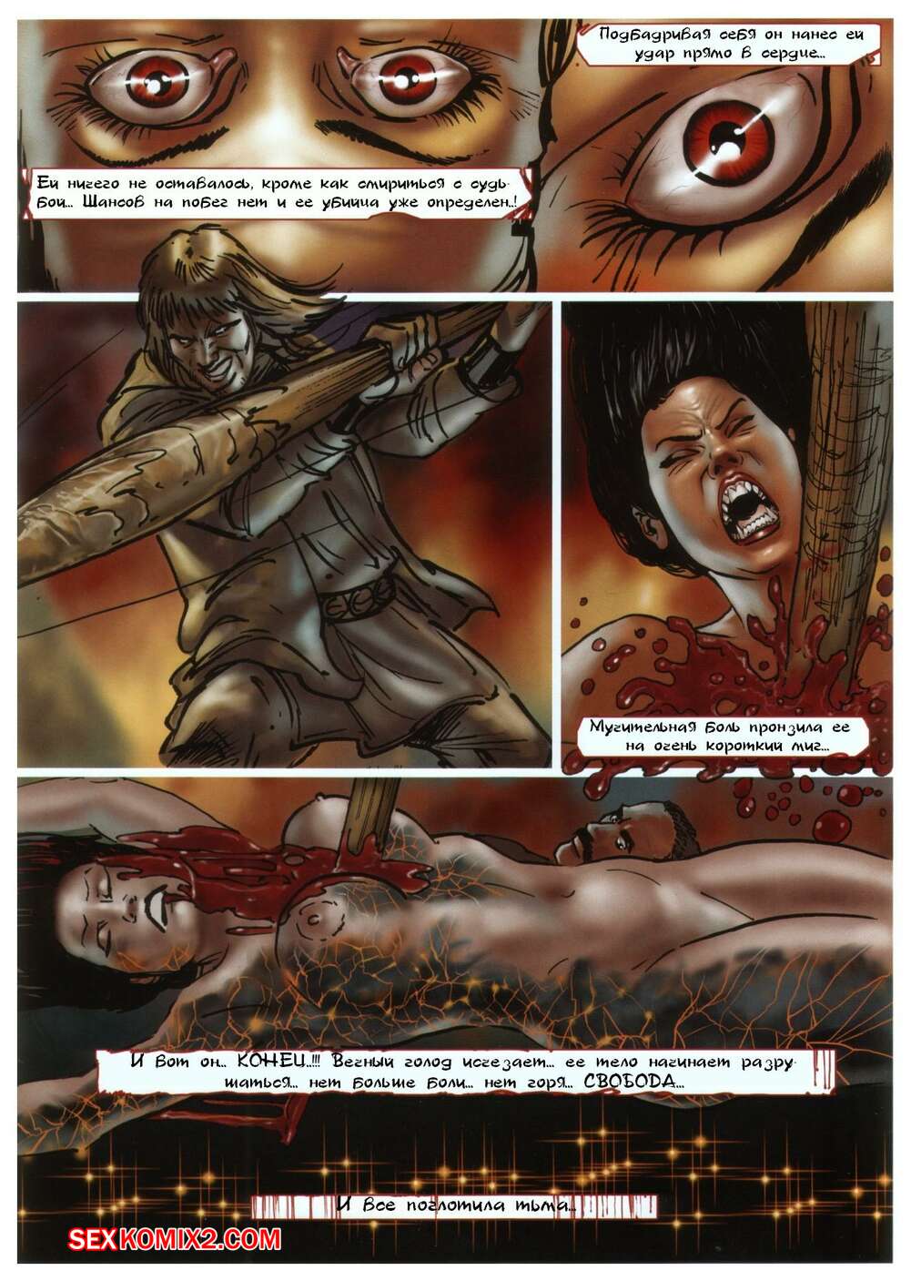 Порно комикс Кристина королева вампиров Горячая сисястая брюнетка вампирша обожает трахаться. Она нападает на парней с большими хуями, после чего отсасывает у них и дает им себя хорошенько выебать.
