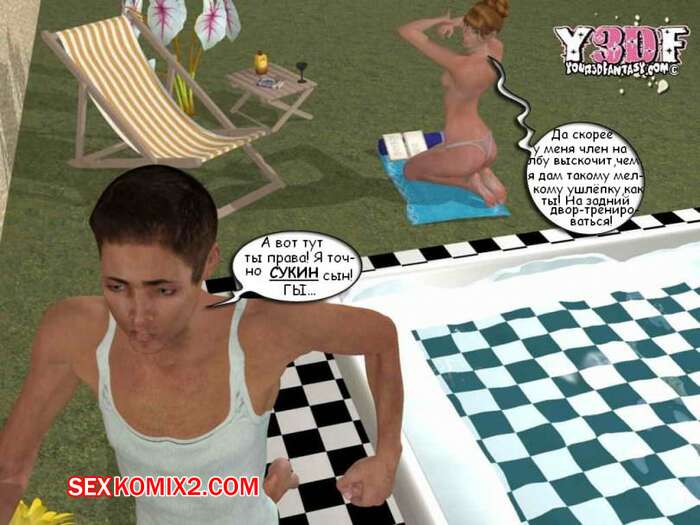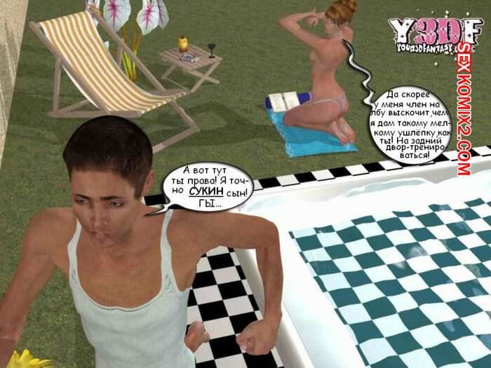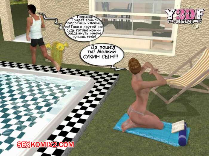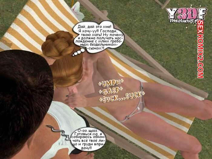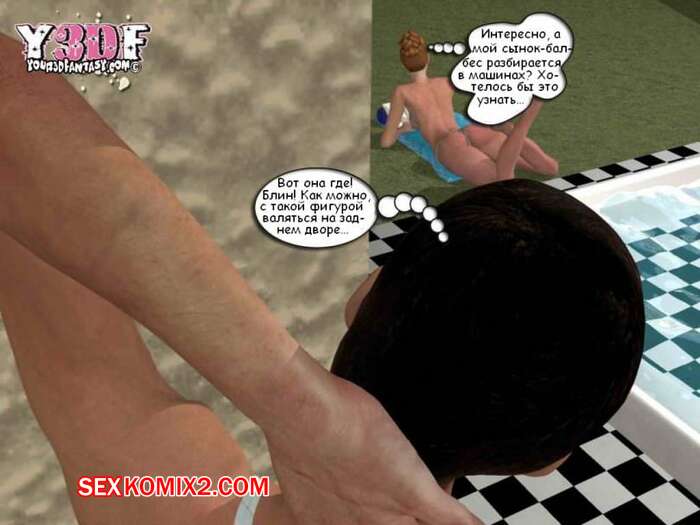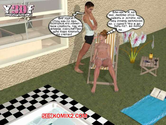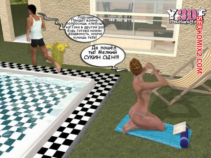 Порно комикс В душе. Y3DF. Bath Парень просто без ума от шикарного тела своей мамки. Пока она загорала у бассейна, он подошел к ней и выебал ее в ротик, кончив на нее. А когда милфа уснула на диване, парень ее хорошенько выебал.