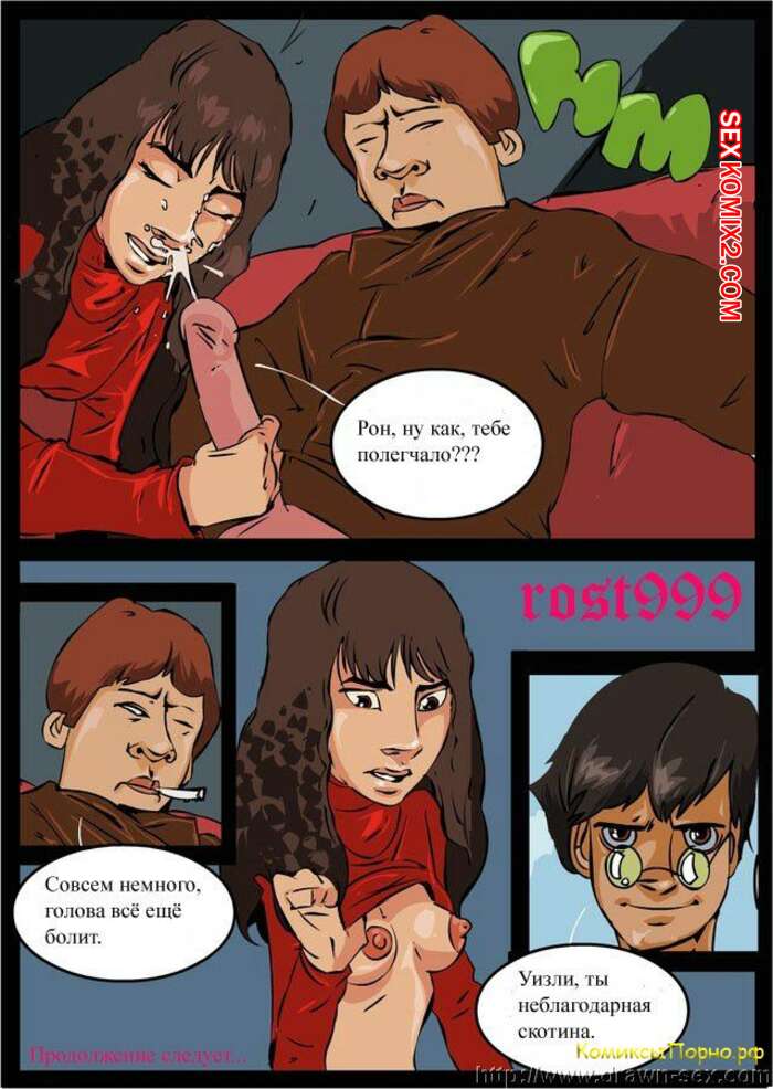 Порно комикс Правдивая история о Гарри Поттере. Части 1 и 2 Гарри Поттер отправился в школу Хогвартс, но там его ждет не совсем обучение магии. С ним учатся горячие сисястые красотки, которые соблазняют парней и учителей, чтобы поебаться.