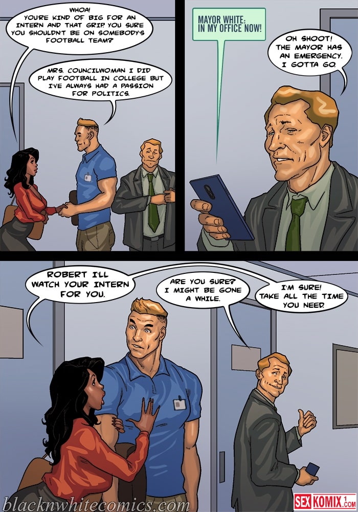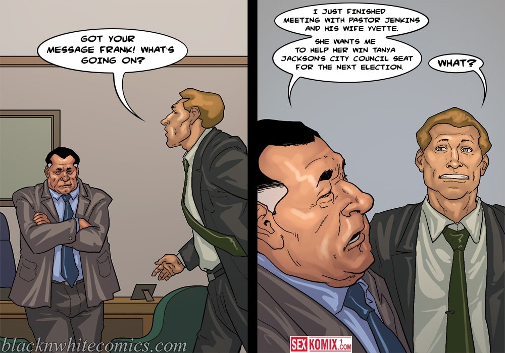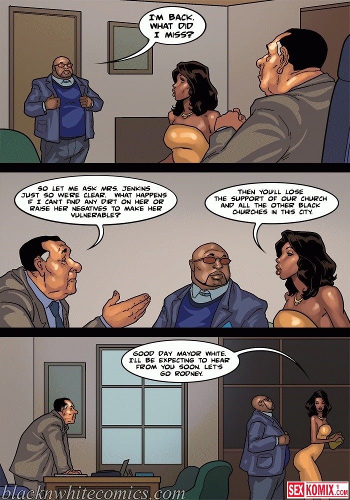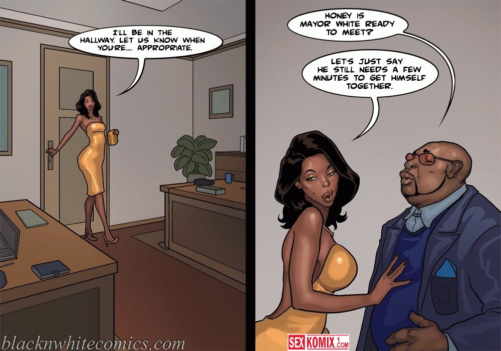 Обновлен. Порно комикс Мэр. Часть 4. На Английском. Любитель трахать чужих жен работает мэром города. Он пригласил на встречу делового партнера и он пришёл со своей сексуальной женой. Девушка уже была наслышана о развратном мэре и была готова изменить мужу, чтобы получить контракт. Когда партнеру позвонили по важному делу и он удалился из комнату, его жена на прямую сказала мэру, что хотел трахнуться с ним пока её мужа нет.
