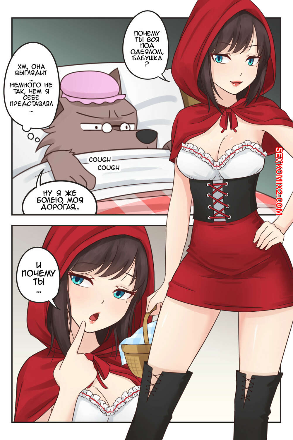 Порно комикс Красная Шапочка. Little Red Riding Hood Красная шапочка встретилась со своей бабушкой в другой всленной и превратила ее в молодую девушку. Она решила этим воспользоваться, поэтому достала свои секс игрушки и стала ласкать молодую красотку.