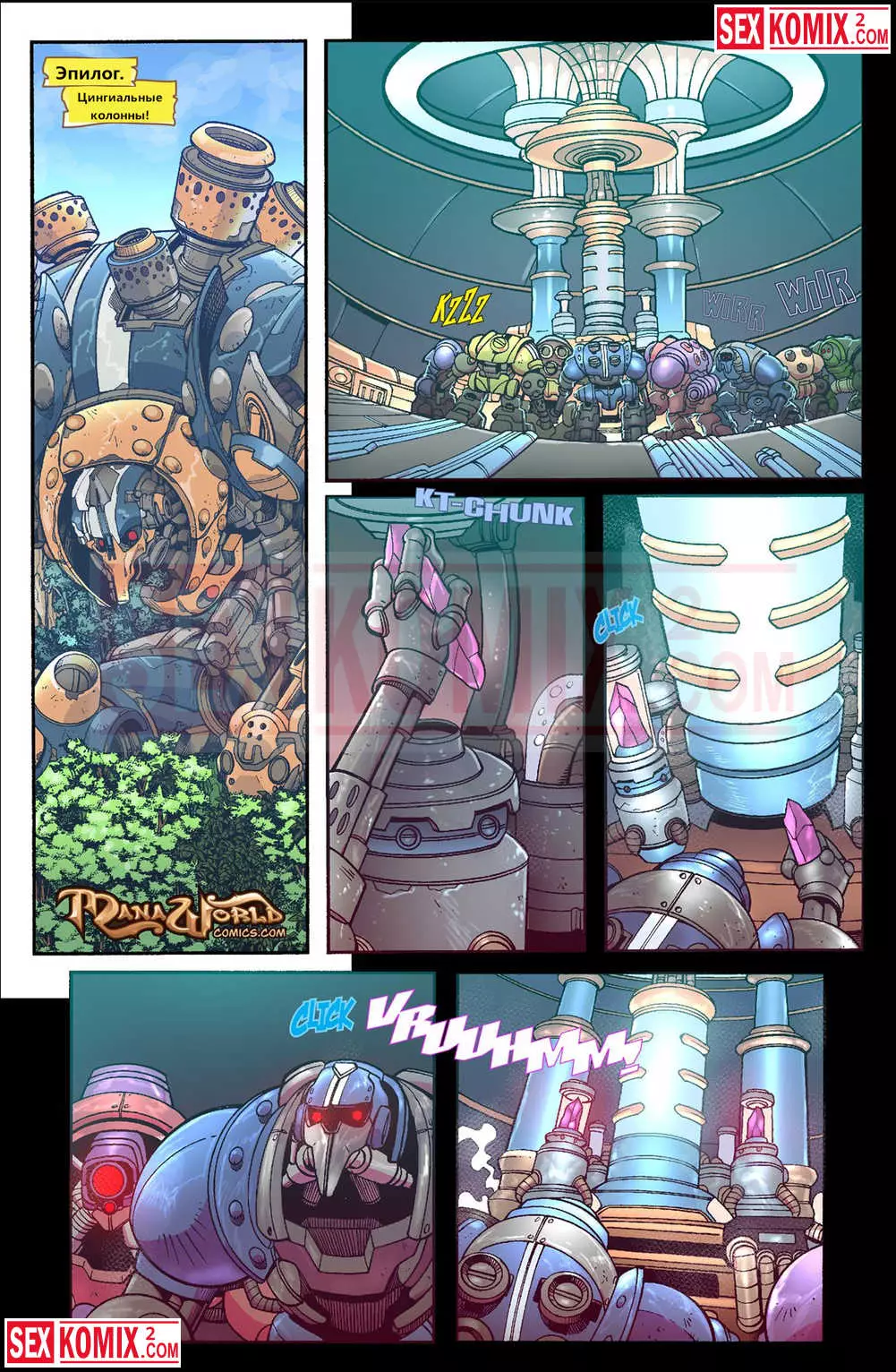 Порно комикс Mana World. Часть 16. Тяжелый металл. Горячие подружки эльфийка и женщина кошка попали в плен к роботизированной форме жизни. Механические парни устроили оргию с этими красотками и взяли их днк.