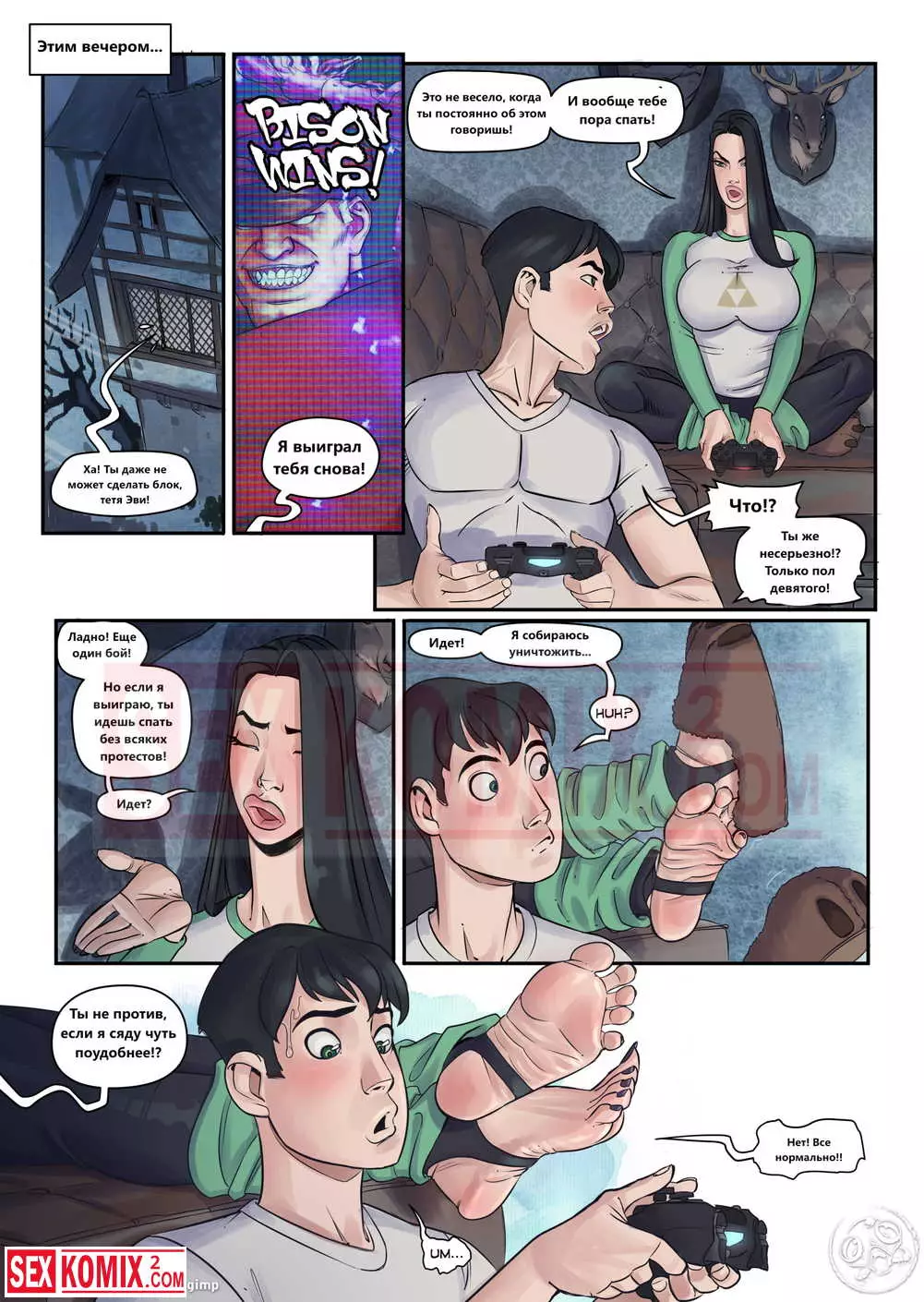 Порно комикс Семейные ценности. Часть 2. Парень проснулся после крепкого сна в доме своей тетушки, он случайно увидел как она спит голая, но не стал к ней приставать. Потом парень шёл порно фотографии с участием его тети и сильно возбудился.