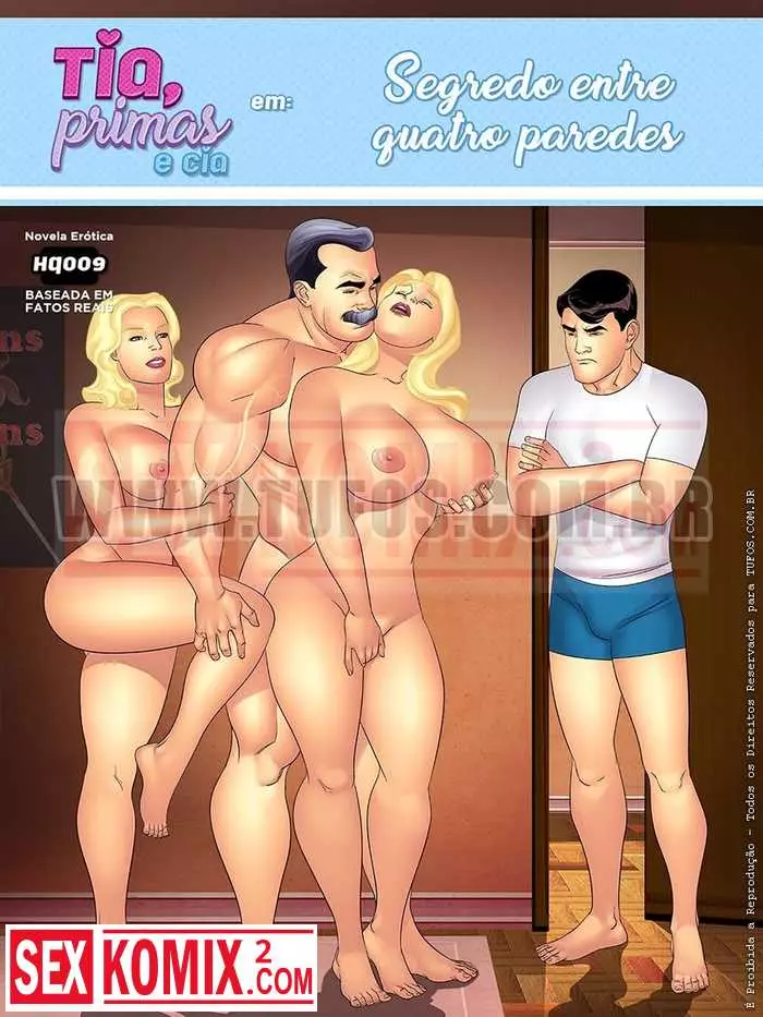 Порно комикс Тетя, кузины и племянник. Часть 9. Секрет в четырех стенах. Мужчина решил трахнуть горячую блондинку и пошёл к ней в комнату. Но его застукали парень с девушкой.