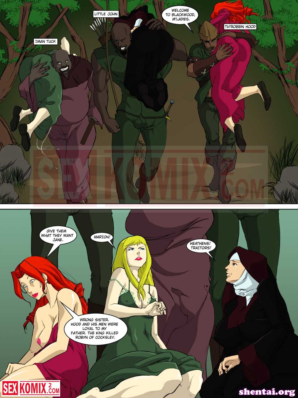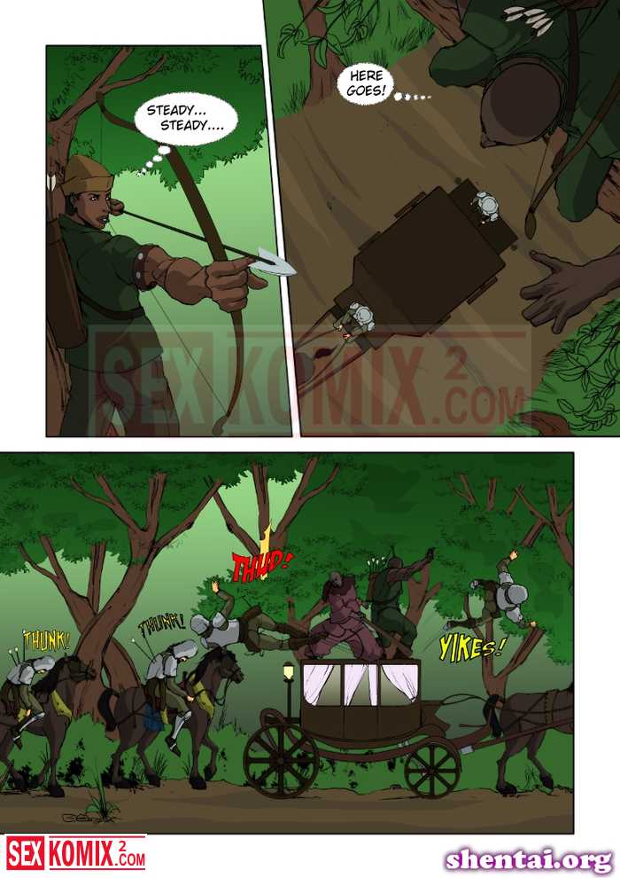 Порно комикс Приключения Тробин Гуда. Робин Гуд. Английский. Темнокожий грабитель спасает девушек от своих скучных мужей и трахает их большим черным членом.
