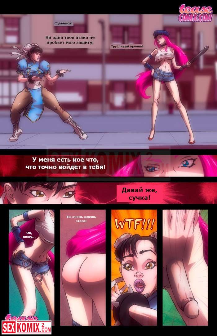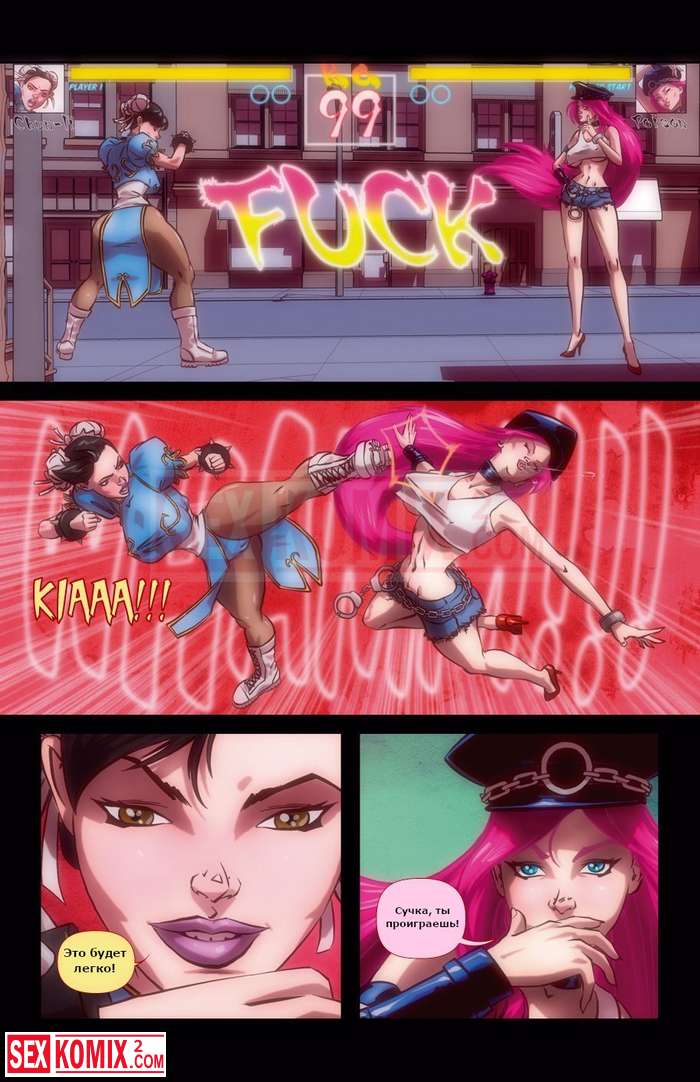 Порно комикс Здесь кончает новый претендент. Уличный боец. Схватка двух красоток продолжалась уже очень долго, их одежда растрепалась и девушки стали голыми. Одна из низ была транссексуалом.