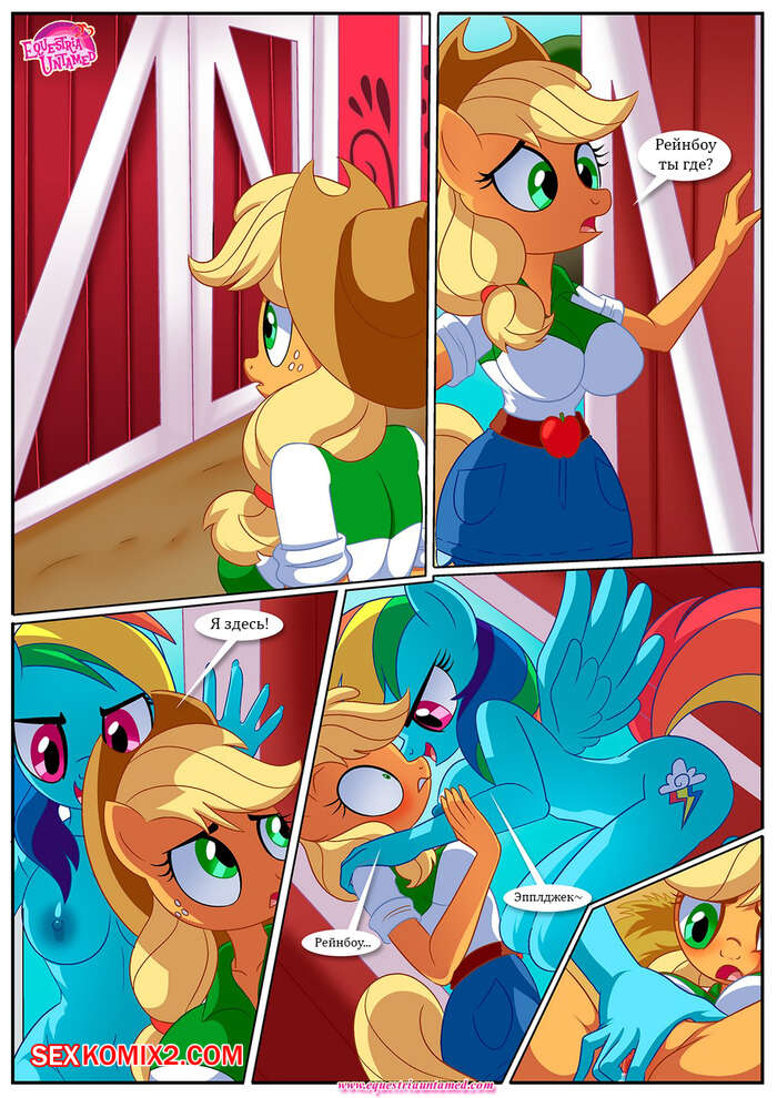 Порно комикс My Little Pony. За закрытыми дверями амбара. Palcomix Горячие красотки пони были очень возбуждены и хотели трахаться. Они разделись перед своим дружком и стали сосать его большой хуй, после чего дали ему себя хорошенько выебать.