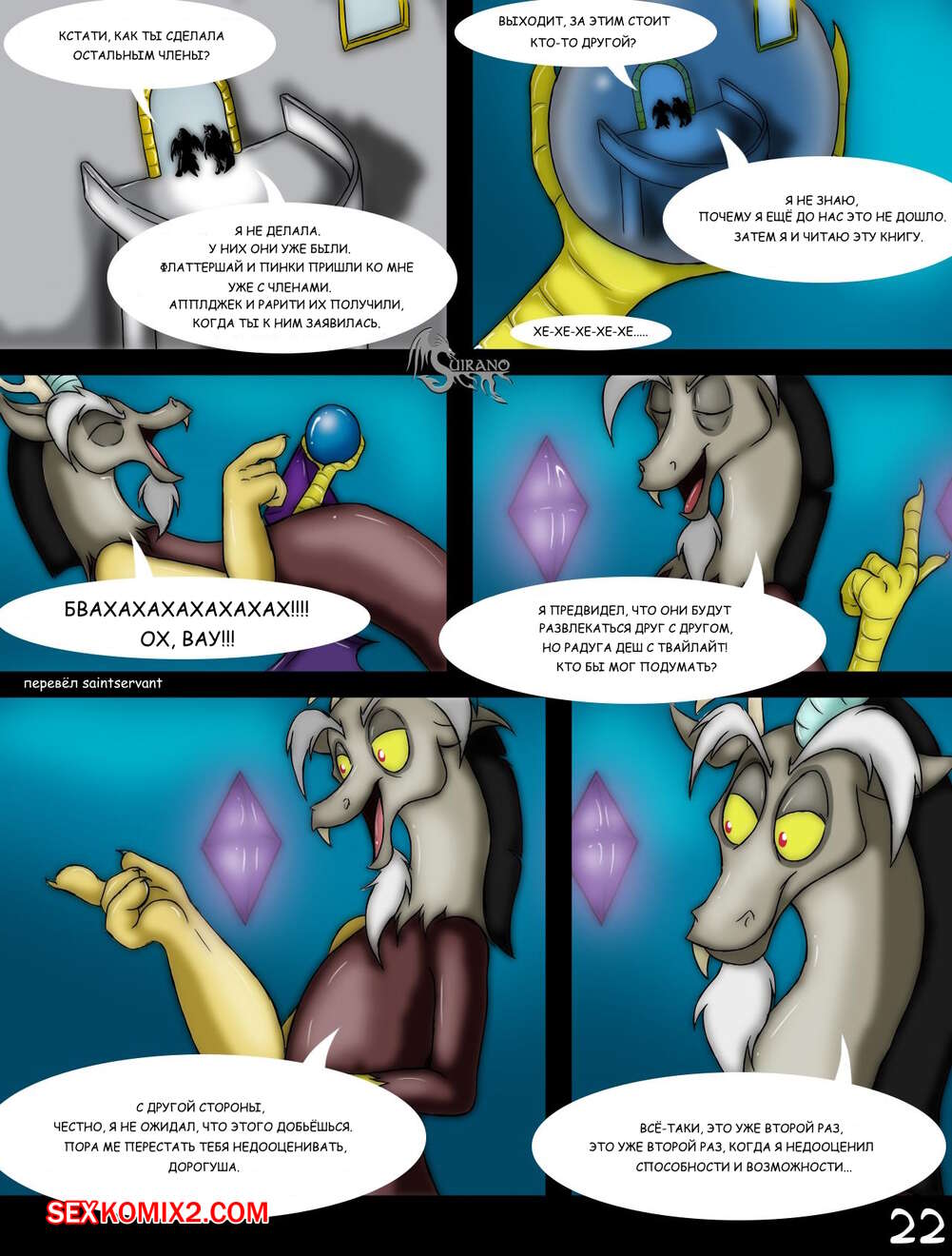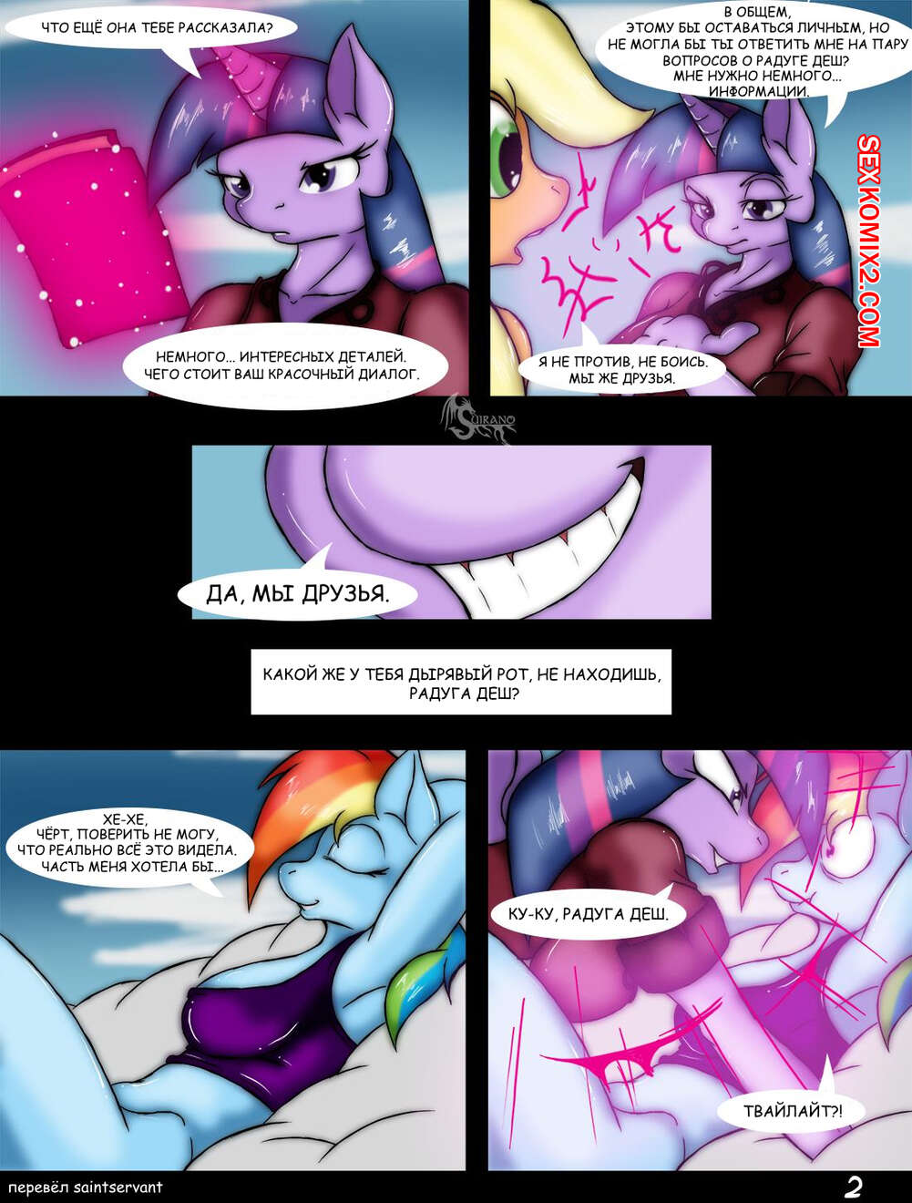 Порно комикс My Little Pony. Искушение. Часть 3. Temptation. Suirano Горячие красотки пони с большими хуями были очень возбуждены и решили повеселиться со своей подругой. Они раздели ее и дали ей отсосать свои большие хуи, после чего выебали ее во все дырочки.