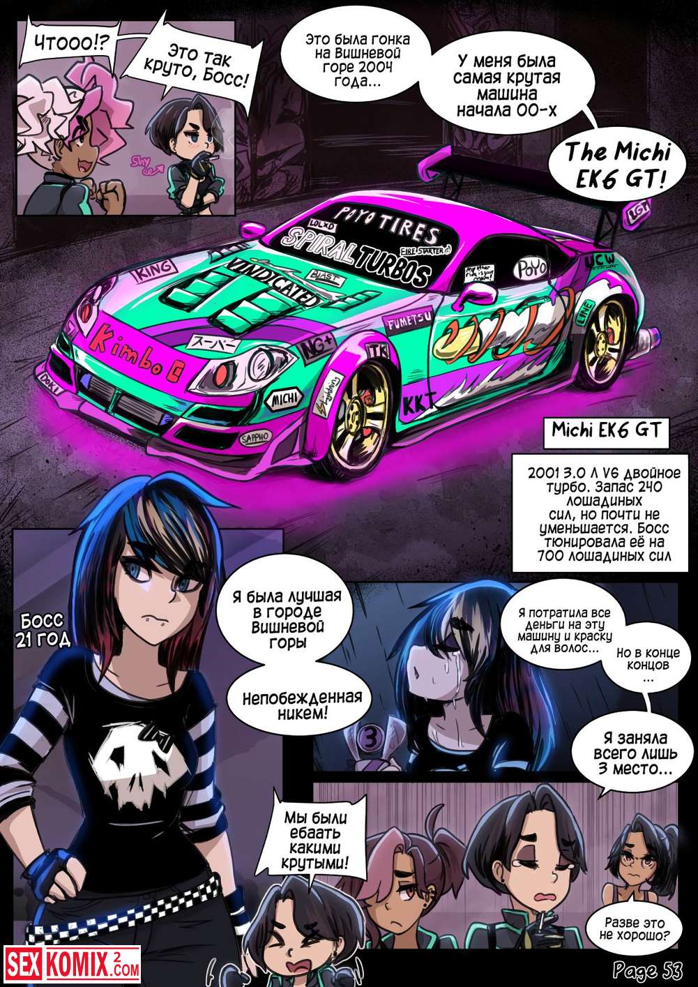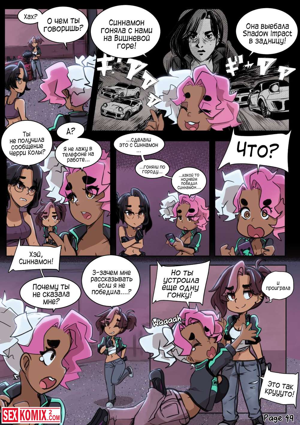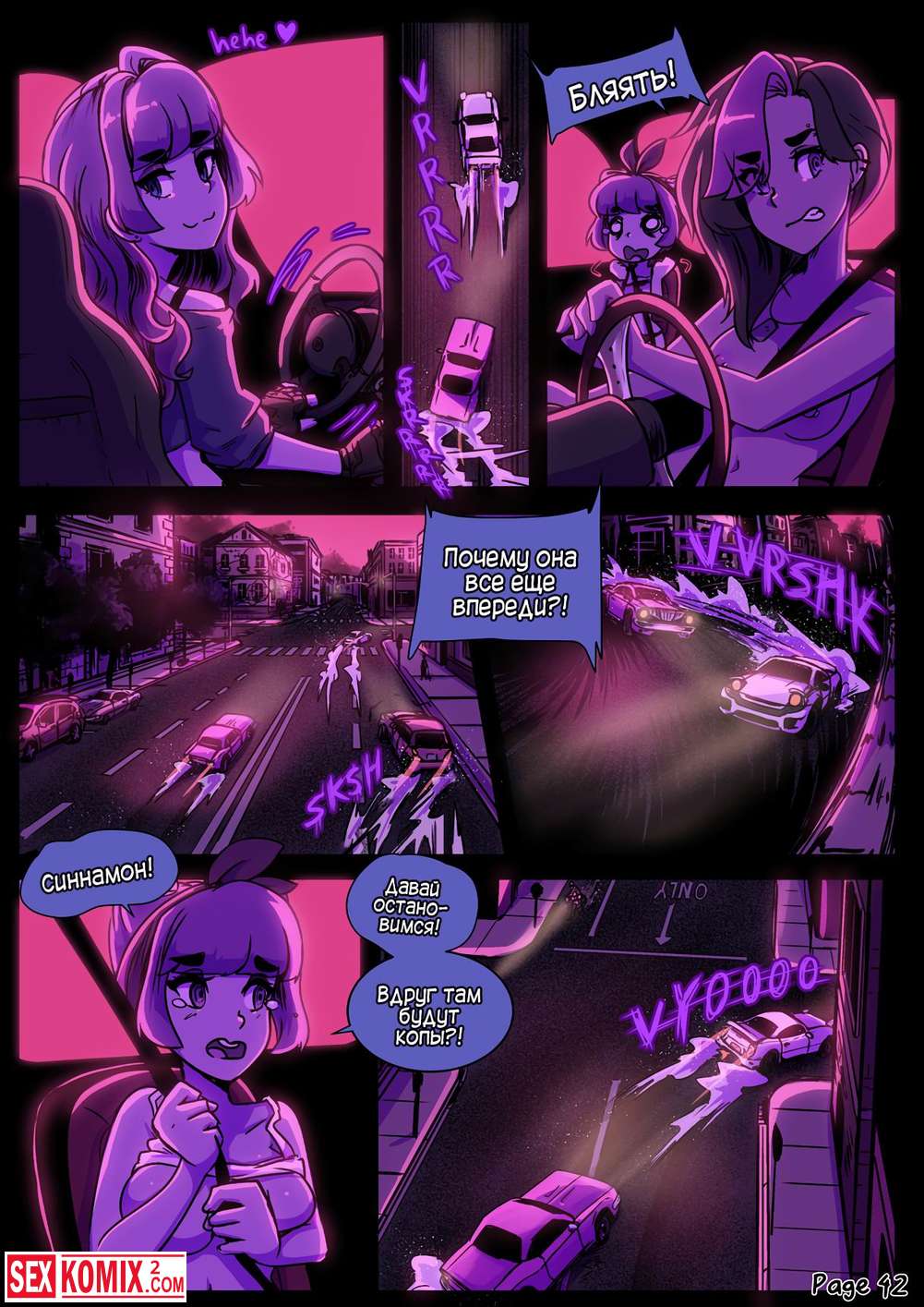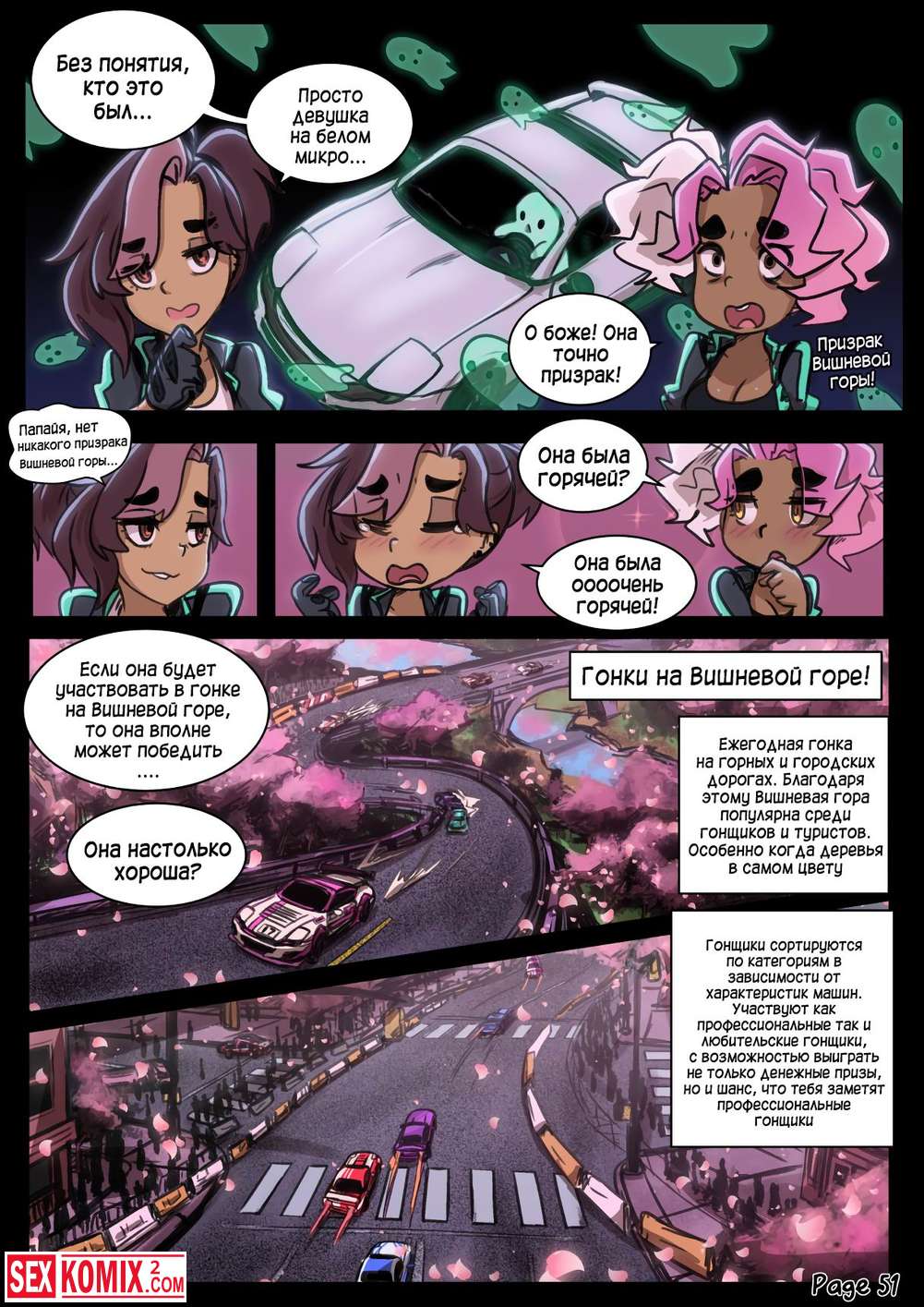 Порно комикс Предел мечтаний. Сексуальные девушки устроили ночные гонки по городским улицам. А после соревнований занялись жарким сексом.