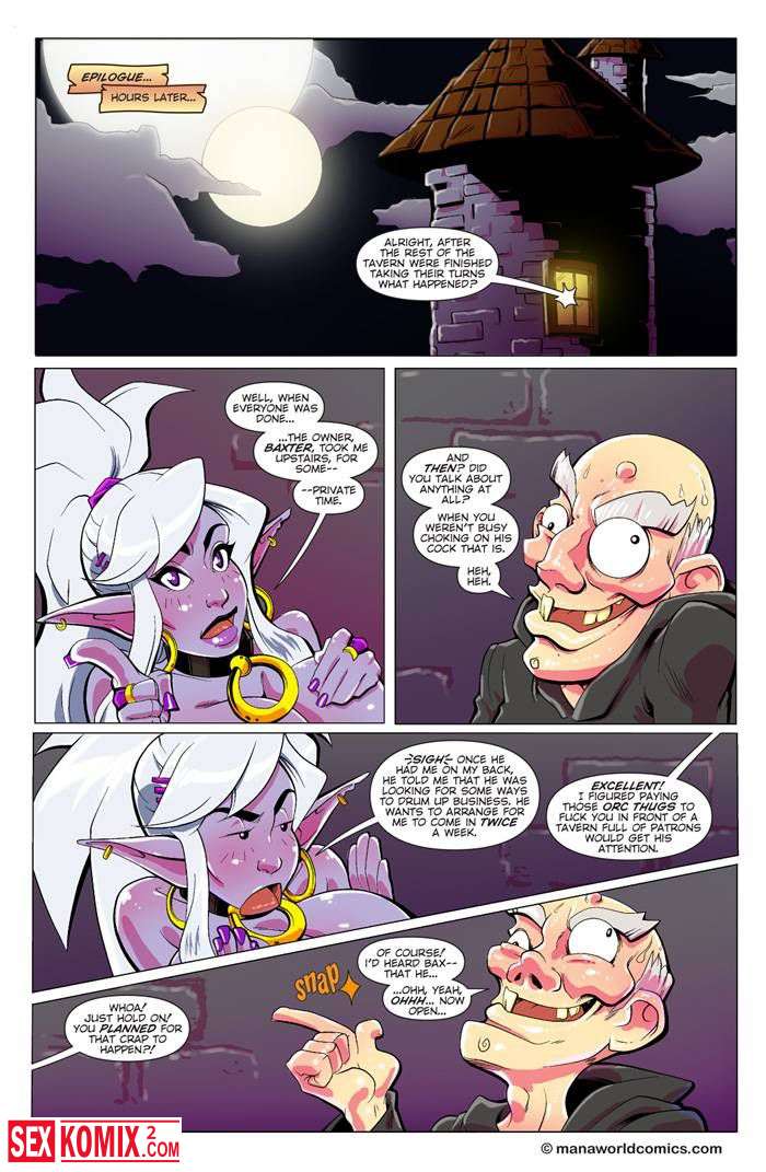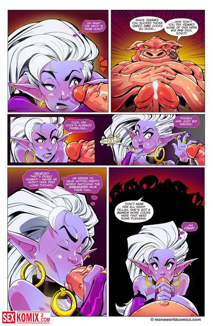 Порно комикс Затрахать. Английский. Эльфийка с большими сиськами пришла в таверну, чтобы разобраться с бандой орков. Но парни восприняли её не правильно и трахнули всех толпой.