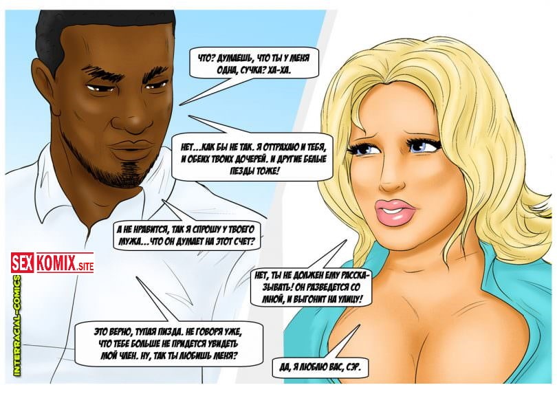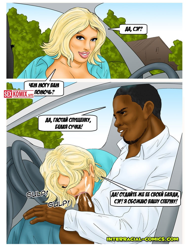 Порно комикс По Американски. Часть 2. Этот комикс о развратных белых сучках, которые сходят с ума от больших черных членов. Изменяют своим белым мужьям. А негры знают о этом влечении и пользуются этим в своих целях, воплощая все свои сексуальные идеи. А когда черные парни трахают блондинок с большими сиськами, они снимают все на видео камеру.
