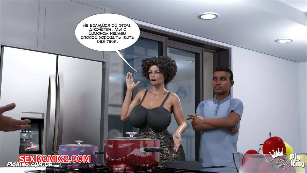 Порно комикс Маргарет. Часть 14. Pig King. Margarethe Сисястая милфа Маргарет поссорилась со своим мужем и решила повеселиться со своим сыном на кухне. Красотка разделась и дала парню себя выебать, пока ее муж куколд наблюдал за ними и дрочил.