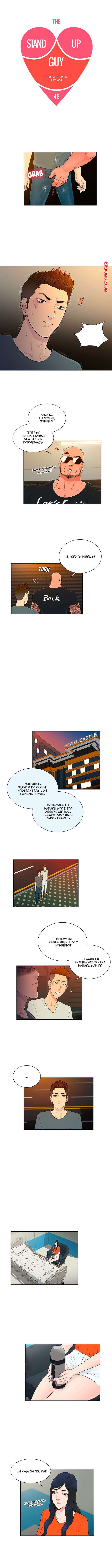 Порно комикс Стойкий парень. Часть 48. The Stand Up Guy Парень хотел поговорить с девушкой, но его не пустила охрана и избила его. Парень попал в больницу с сильными побоями, а туда к нему пришла его навестить сексуальная брюнетка.