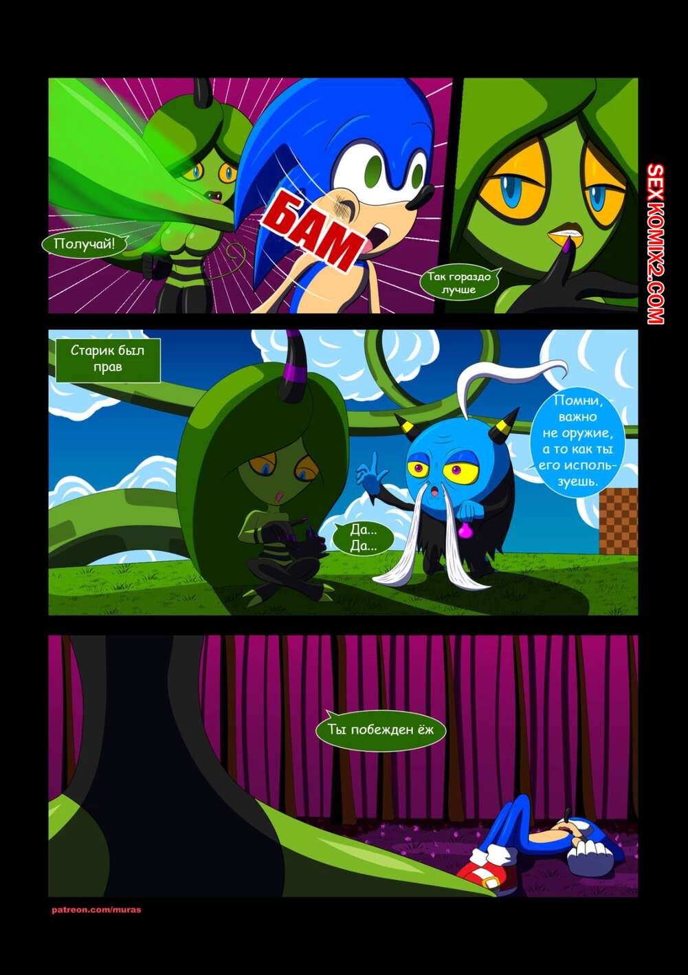 Порно комикс Соник. Ловушка похоти. Эпичный бой Соника с сильной девушкой превратился в страстный секс. Злодейка чуть не затрахала ёжика до потери сознания.