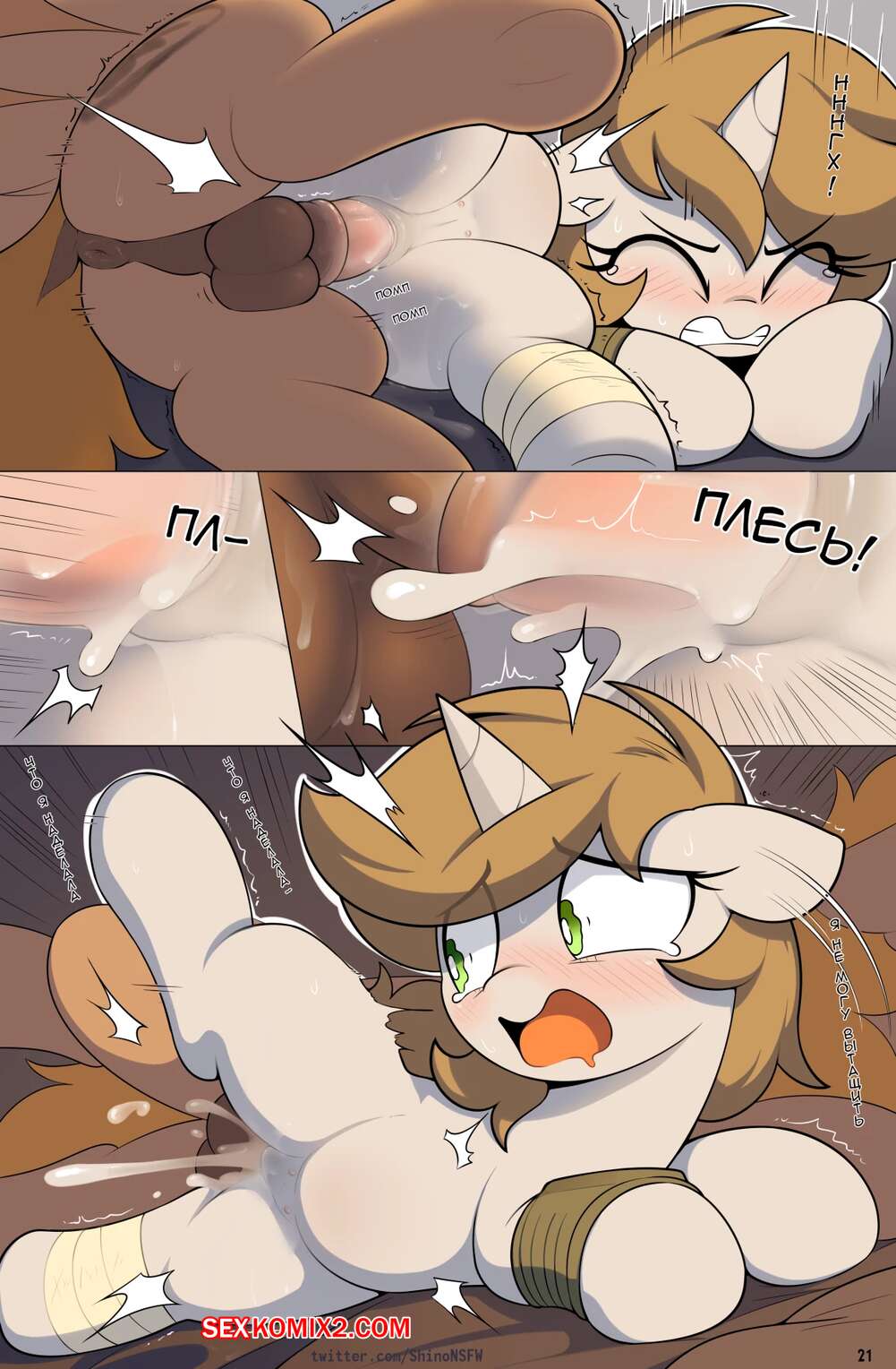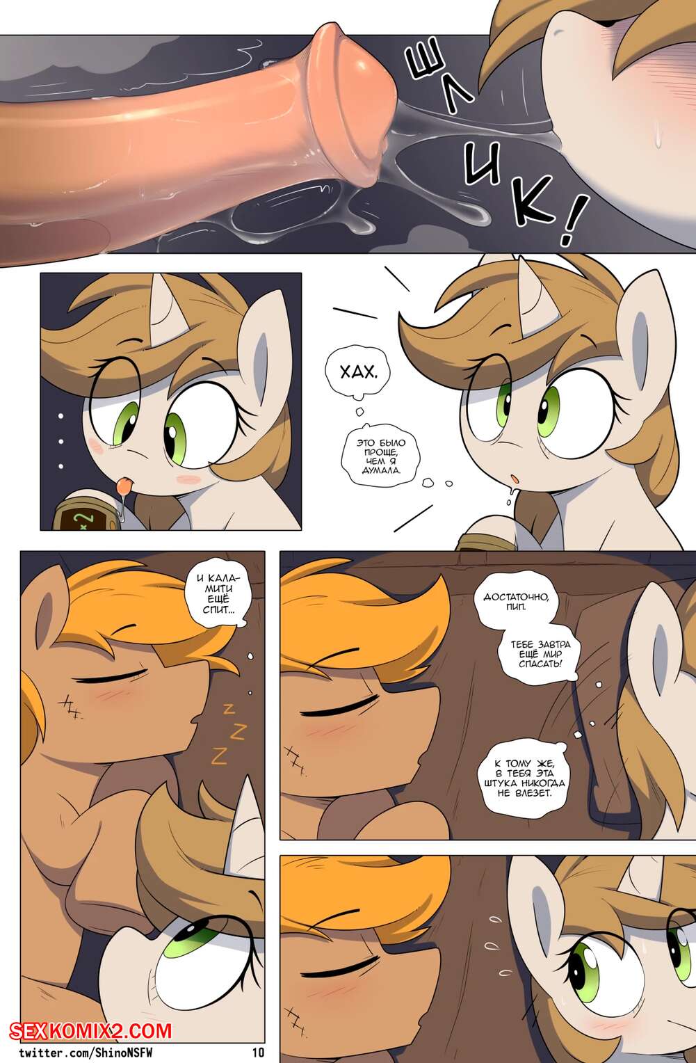Порно комикс My Little Pony. Fallout. Equestria Chain Reaction. shino Сексуальная красотка пони ночью забрела в дом к парню и возбудилась, увидев его большой хуй. Девушка стала сосать хуй парня, после чего дала ему себя хорошенько выебать.