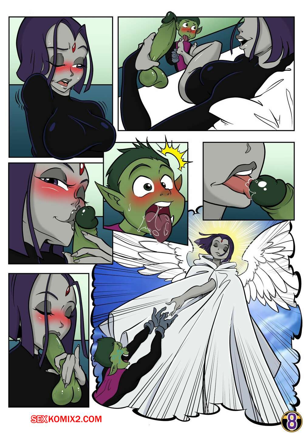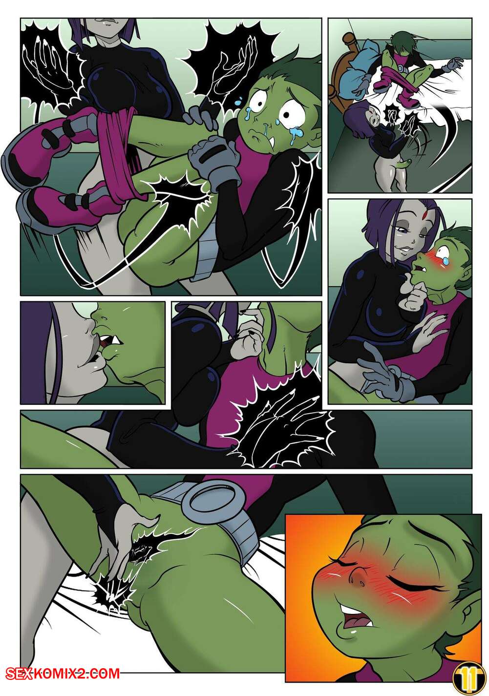 Порно комикс Титаны. Teen Titans. RisenHentaiDemonHobKun. Парень решил подглянуть за Рейвен в душе, это была ошибка. Девушка быстро его вычислила и наказала.