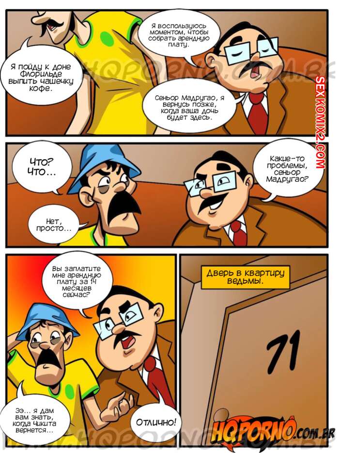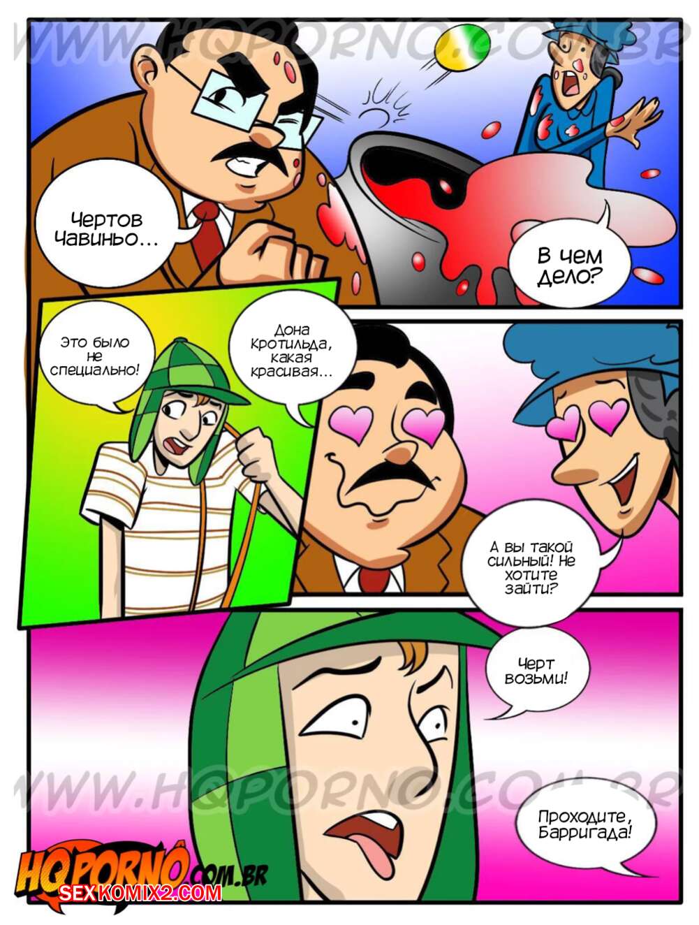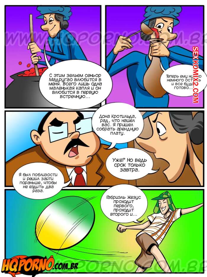 Порно комикс Чавиньо. Часть 7. Chavinho. HQporno Сеньор Барригада пошел к доне Кротильде, чтобы получить арендную плату и попал под влияние любовного зелья. Старуха разделась и отсосала хуй мужчины, после чего он выебал ее во все дырочки.