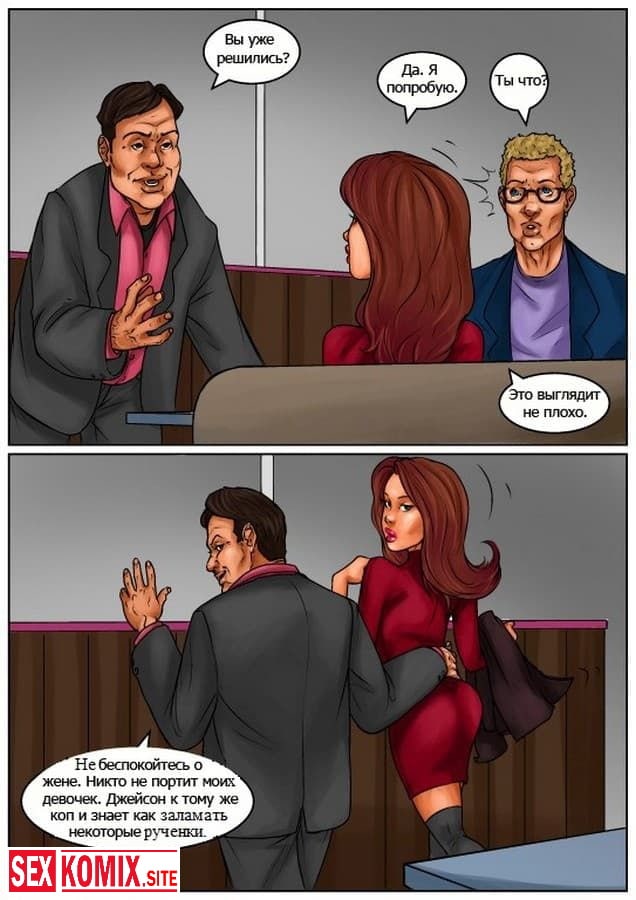 Порно комикс Жене приходиться раздеться. В этом комиксе для взрослых вы узнаете как сексуальной и стройной девушке пришлось отрабатывать долги своего парня занимаясь стриптизом. Эта работа привела её в мир разврата и секса, где красотка познакомилась с чернокожим вышибалой и бросила своего мужа идиота ради большого члена и накаченного тела черного парня.