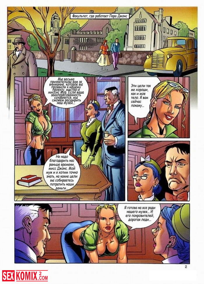Порно комикс Лара Джонс. День стрессов. Блондинке потребовались инвестиции для расширения музея, и она пошла к богатому человеку за деньгами.