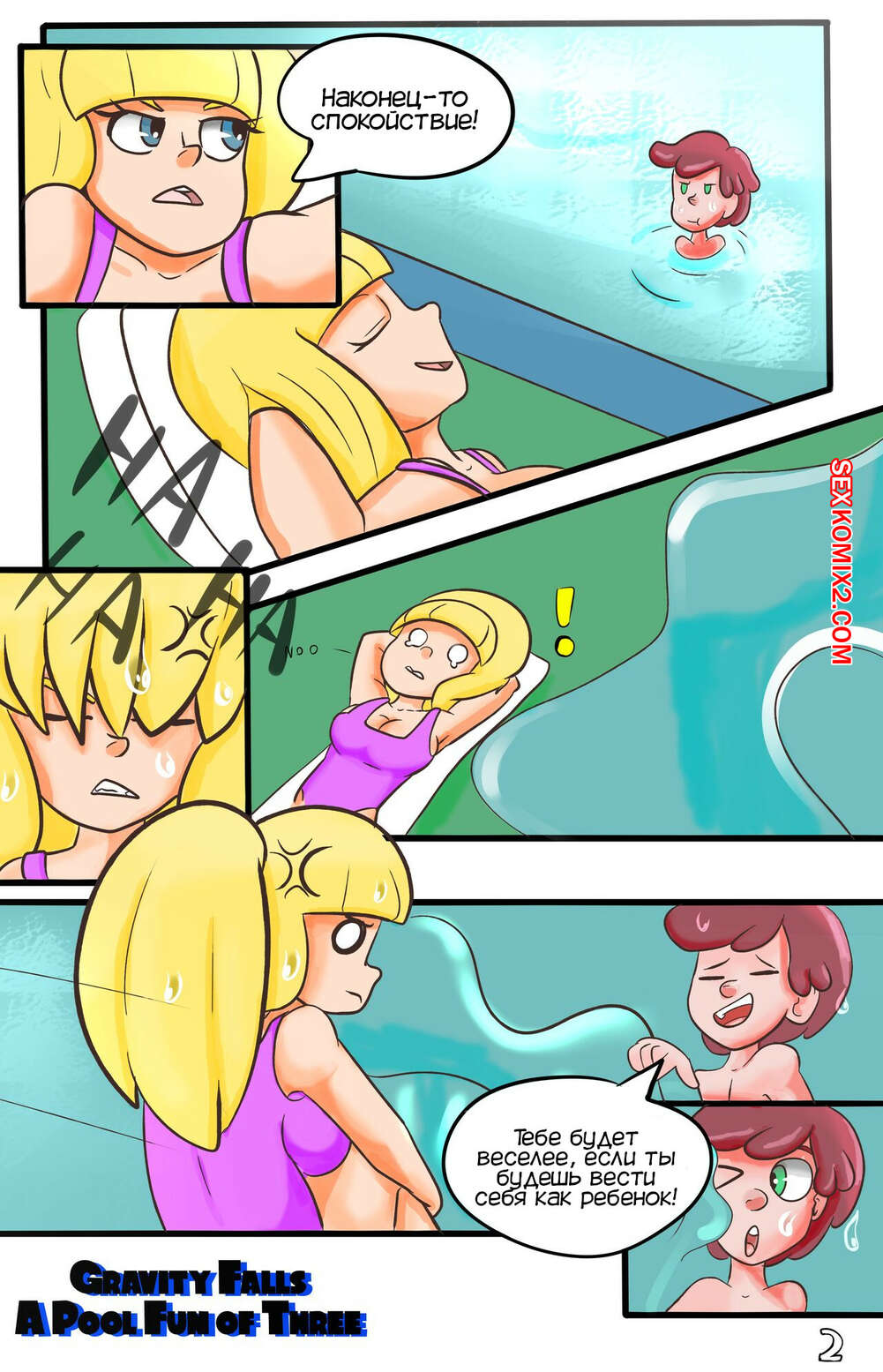 Порно комикс Gravity Falls. Тройное веселье у бассейна. A Pool Fun of Three Диппер и Пасифика остались наедине у бассейна и парень возбудился, увидев голую сиську девушки. Красотка заметила стояк парня и решила повеселиться, начав сосать член парня.