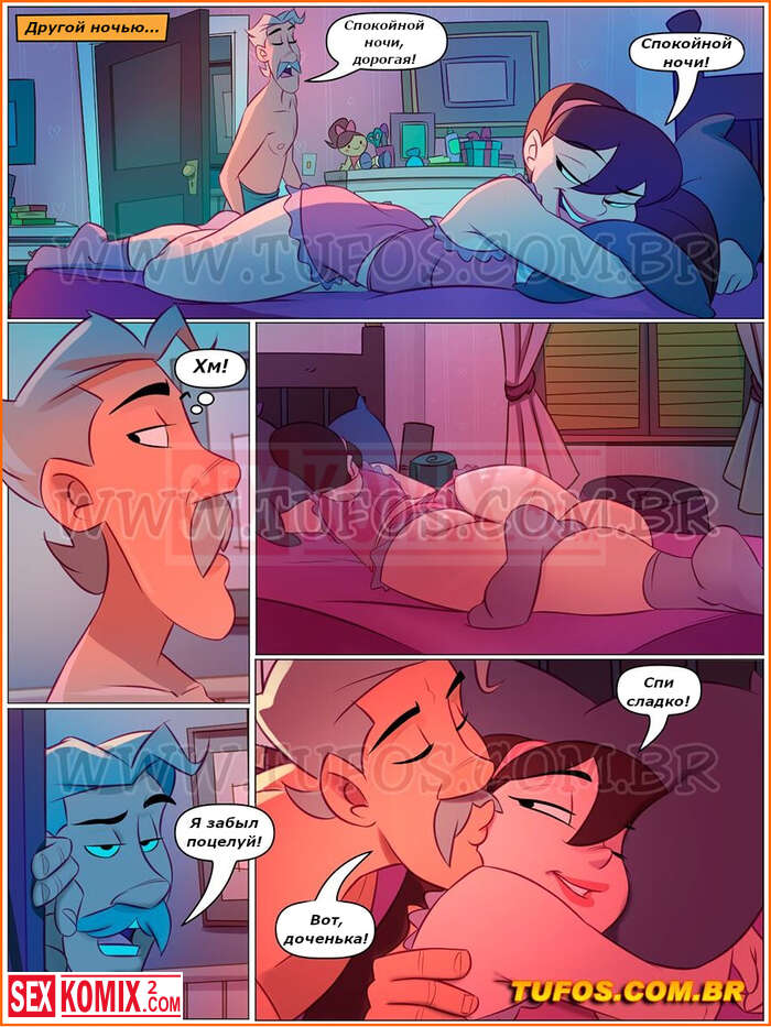 Порно комикс Похотливая семейка. Часть 91. Невинная задница. Каждую ночь девушка пытается соблазнить мужчину, но он замечает этот флирт не с первого раза.