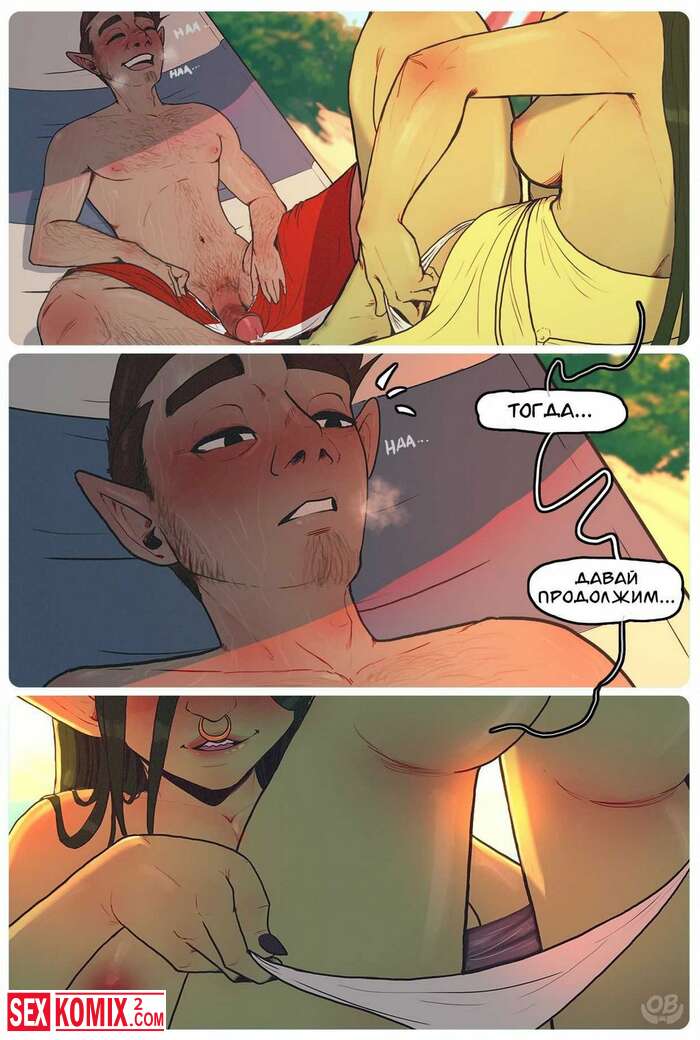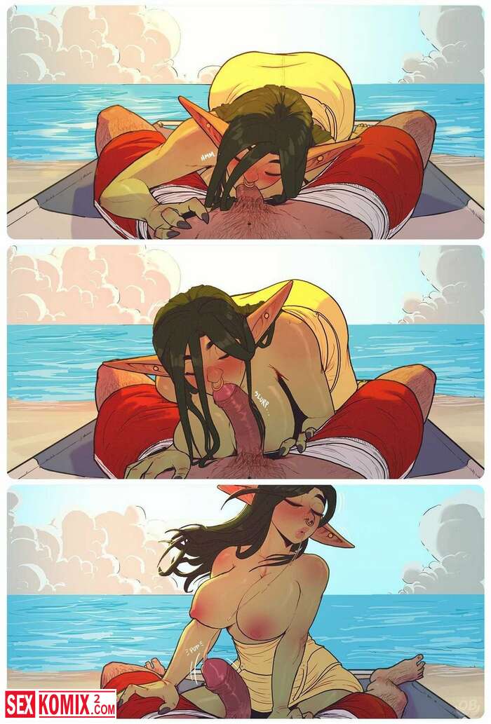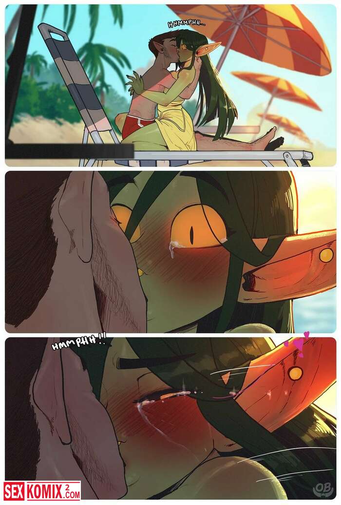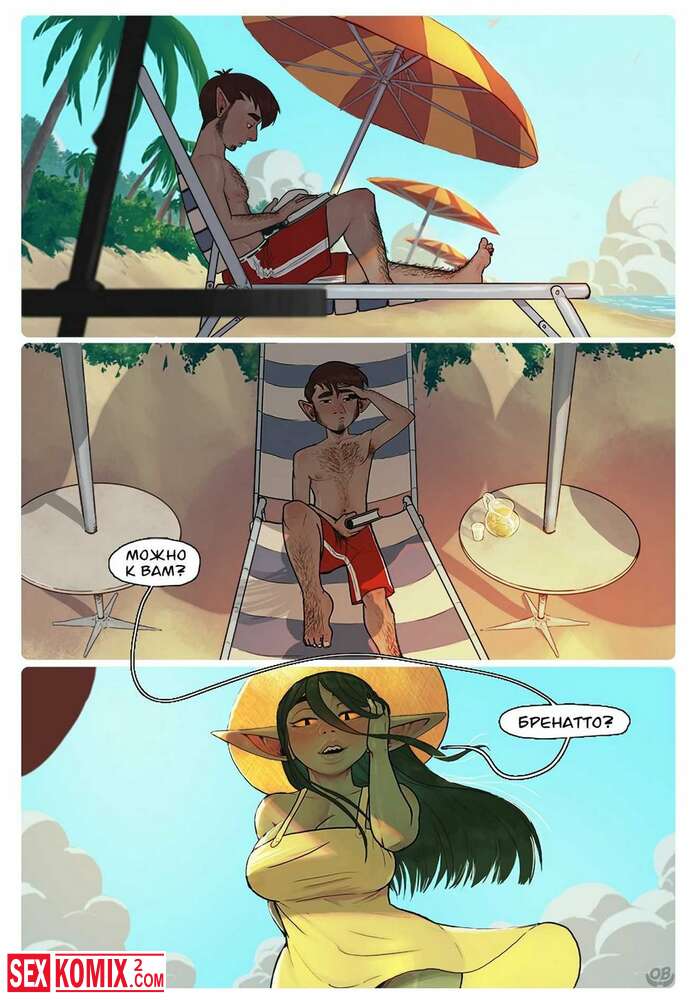 Порно комикс Встреча на пляже. На солнечном пляже красотка встретила старого знакомого и начала приставать к нему. Парень не растерялся и трахул её прямо под солнцем.