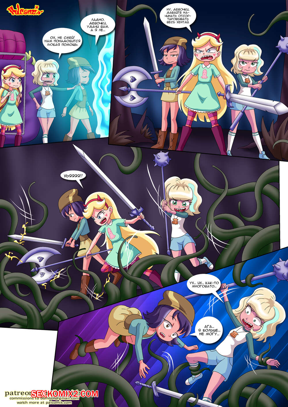 Порно комикс Стар против. Спасение принцессы Марко. Palcomix Марко был похищен и его подруги отправились на спасение друга. Девушкам пришлось преодолеть множество сексуальных испытаний, но в итоге они нашли Марко и освободили его.