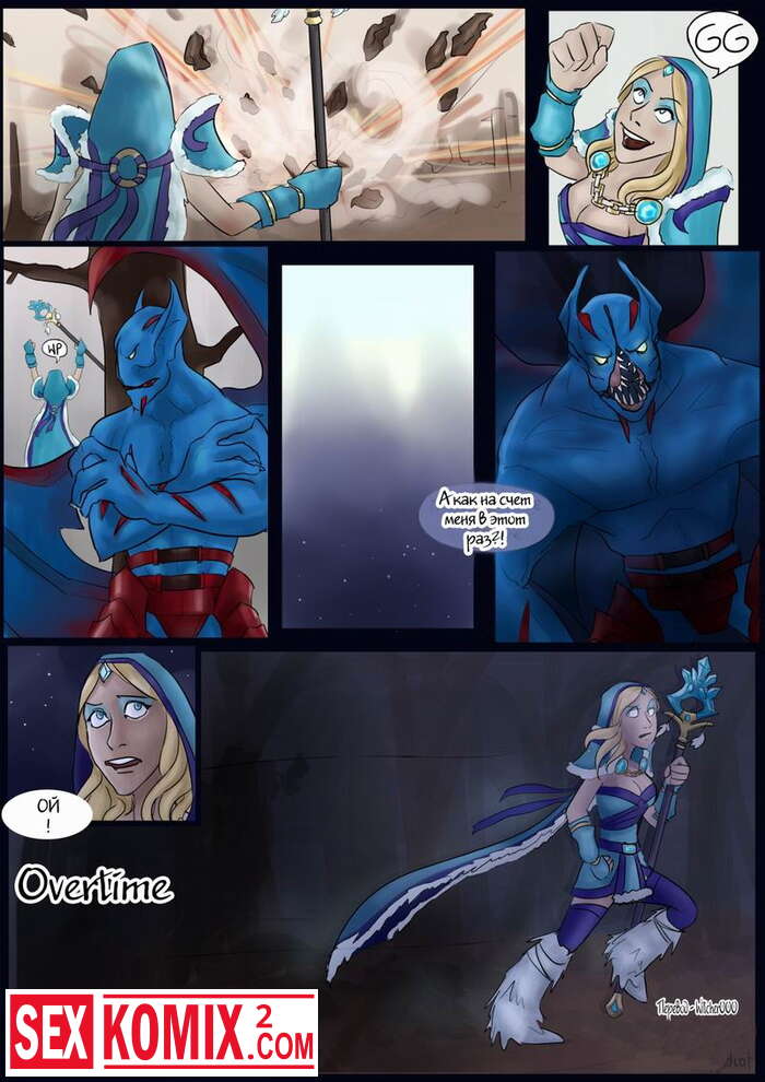 Порно комикс Дота 2. Овертайм. Dota 2. Overtime. Волшебница из игры, поле победы над врагом не успела сбежать на свою базу и её поймал противник, чтобы выебать.