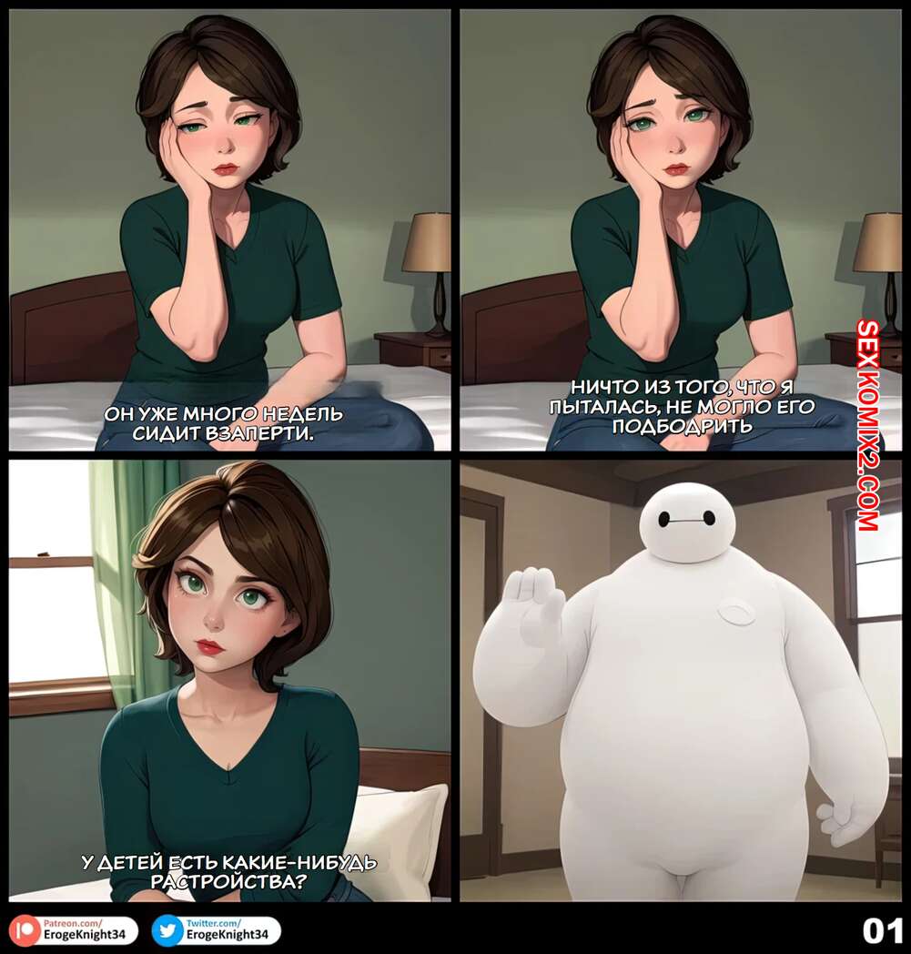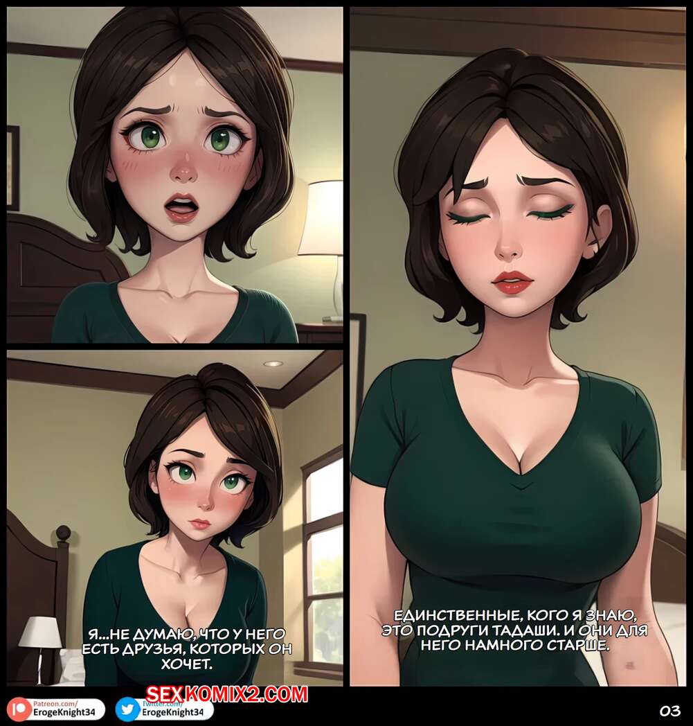 Порно комикс Тетя Кэсс делает тебя счастливым. Tia Cass Haciendote Feliz. ErogeKnight Сексуальная брюнетка милфа была очень возбуждена и решила повеселиться со своим племянником. Она разделась и отсосала его большой хуй, после чего позволила ему кончить на нее.