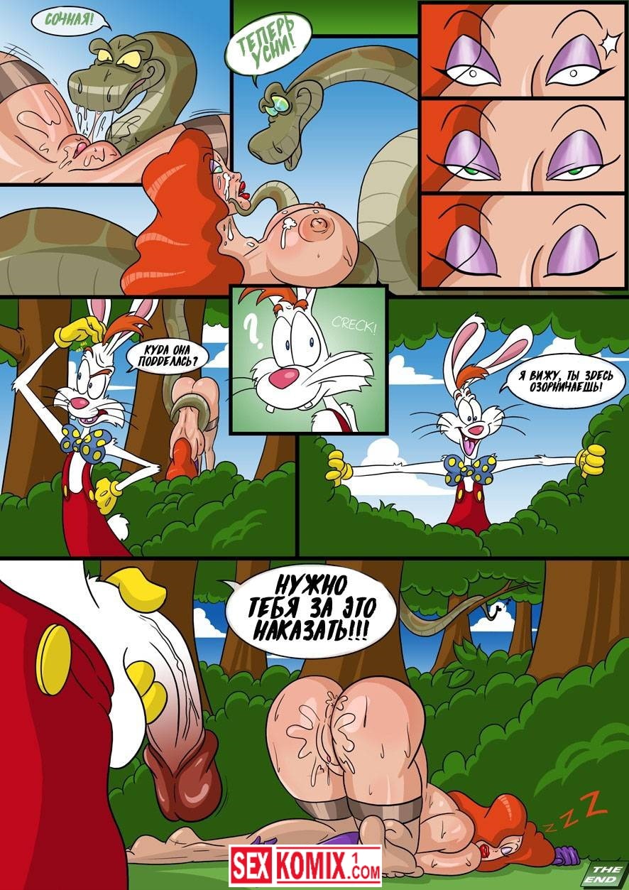 Читайте порно комикс «Джессика Рэббит в первородном грехе». В этом комиксе для взрослых вы прочитаете о том как сексуальная красотка пошла на пикник со своим мужем. И пока супруг бугал за цветами, на неё напал развратный змей и начал трахать сиськастую девушку во все дыры, в рот и задницу.