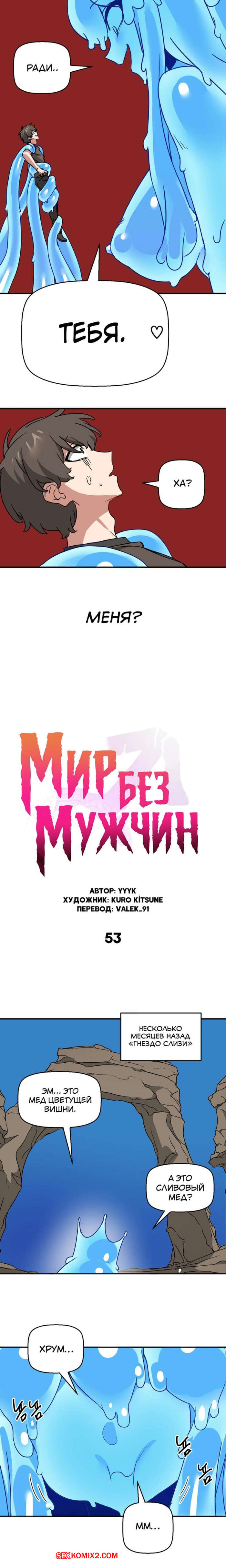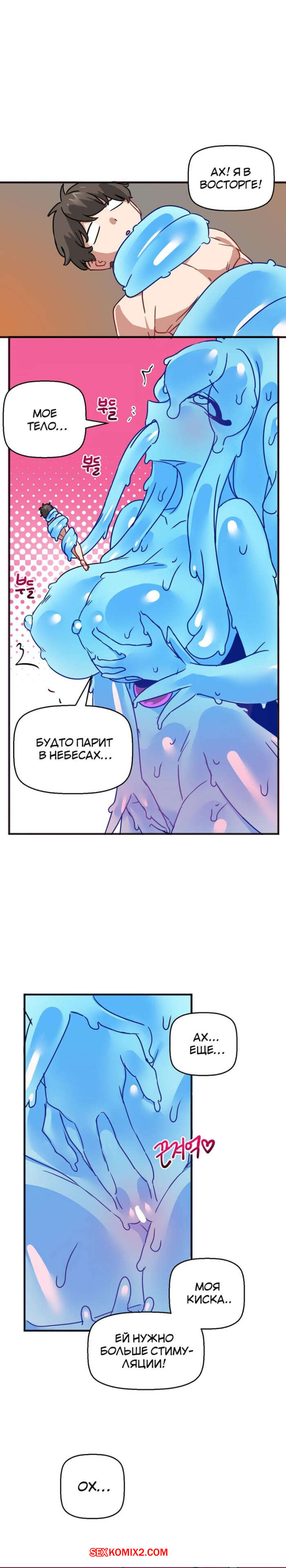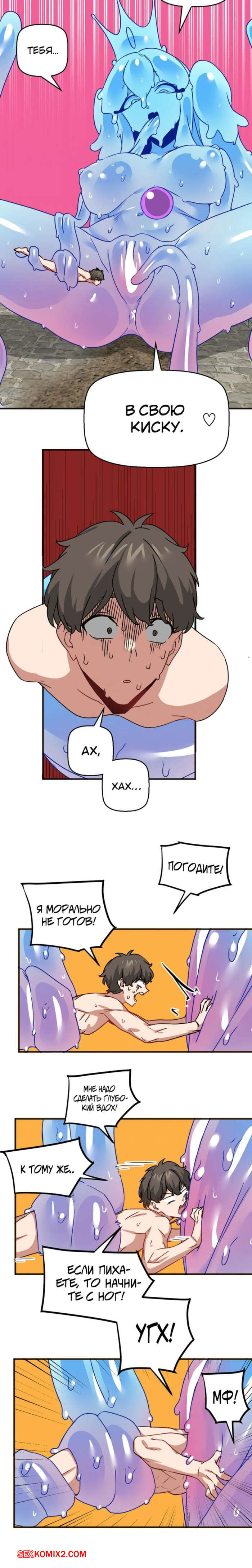 Порно комикс Мир без мужчин. Части 53 и 54 и 55. A world without men Сексуальная красотка схватила парня своими щупальцами и сняла с него всю одежду. Девушка стала ласкать свою пизденку с помощью парня, получая от этого огромное удовольствие.