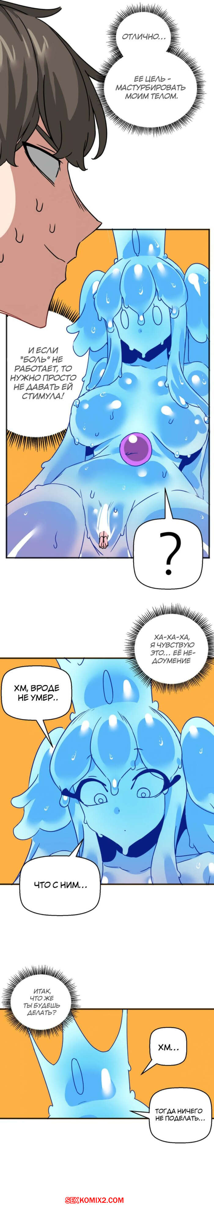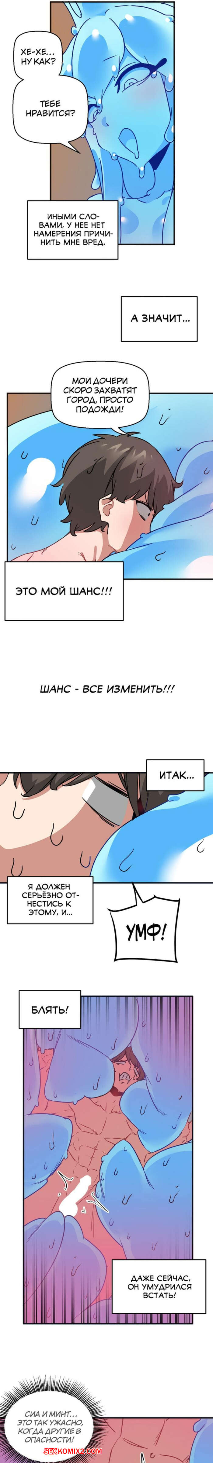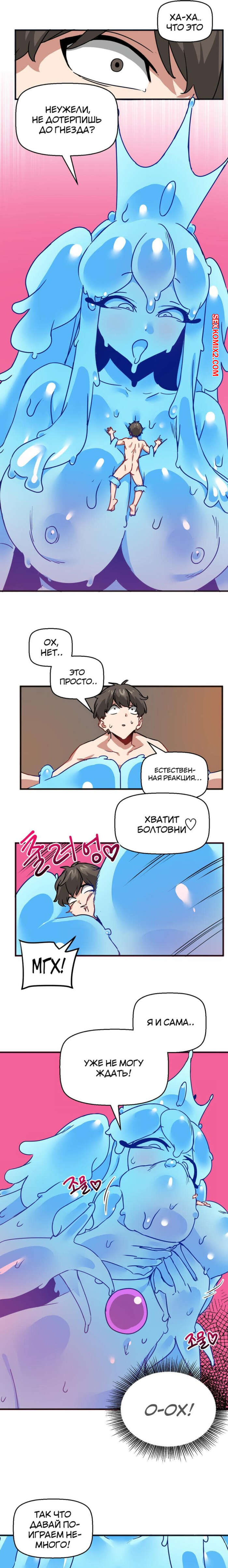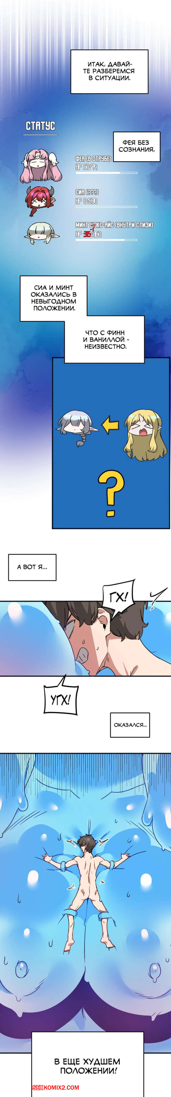 Порно комикс Мир без мужчин. Части 53 и 54 и 55. A world without men Сексуальная красотка схватила парня своими щупальцами и сняла с него всю одежду. Девушка стала ласкать свою пизденку с помощью парня, получая от этого огромное удовольствие.