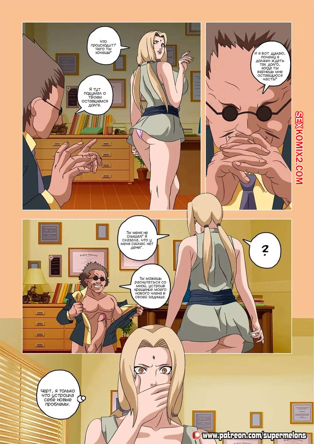 Порно комикс Наруто. Гато наносит ответный удар. The Gato Strikes Back. Super Melons Сексуальная милфа Тсунаде задолжала денег старику. Он требует от нее вернуть все, но красотка проиграла все деньги до последнего цента. Она оголила сиськи, желая решить проблему по своему, но все пошло не по ее плану..