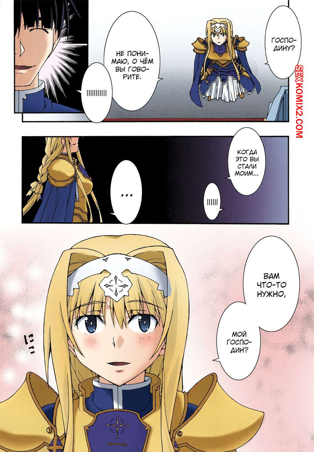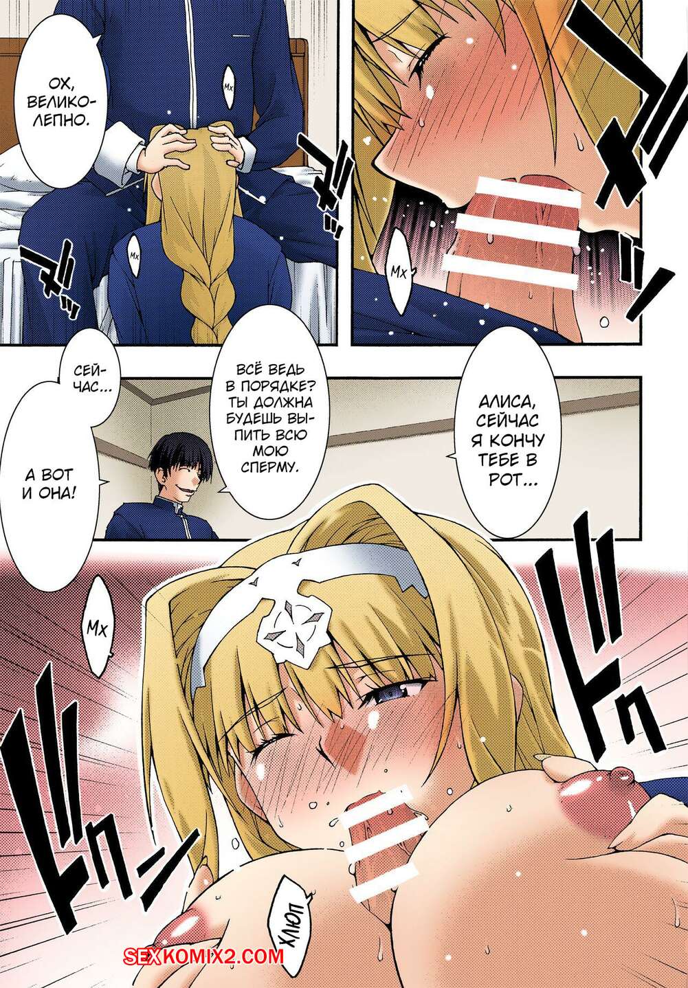 Порно комикс Sword Art Online. Падшая Алиса. Sandglass Парень шут был очень возбужден и решил повеселиться с сексуальной блондинкой. Он раздел ее и дал красотке отсосать свой большой хуй, после чего хорошенько ее выебал.