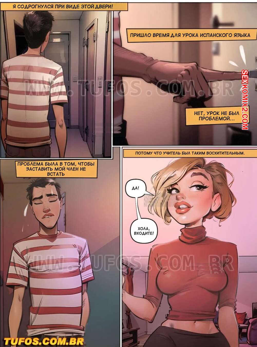 Порно комикс Наслаждение сумасшедшей жизнью. Часть 8. Tufos. Милфа училка пришла преподавать частные уроки. Парень ей так понравился, что женщина решали обучить его в первую очередь сексу.