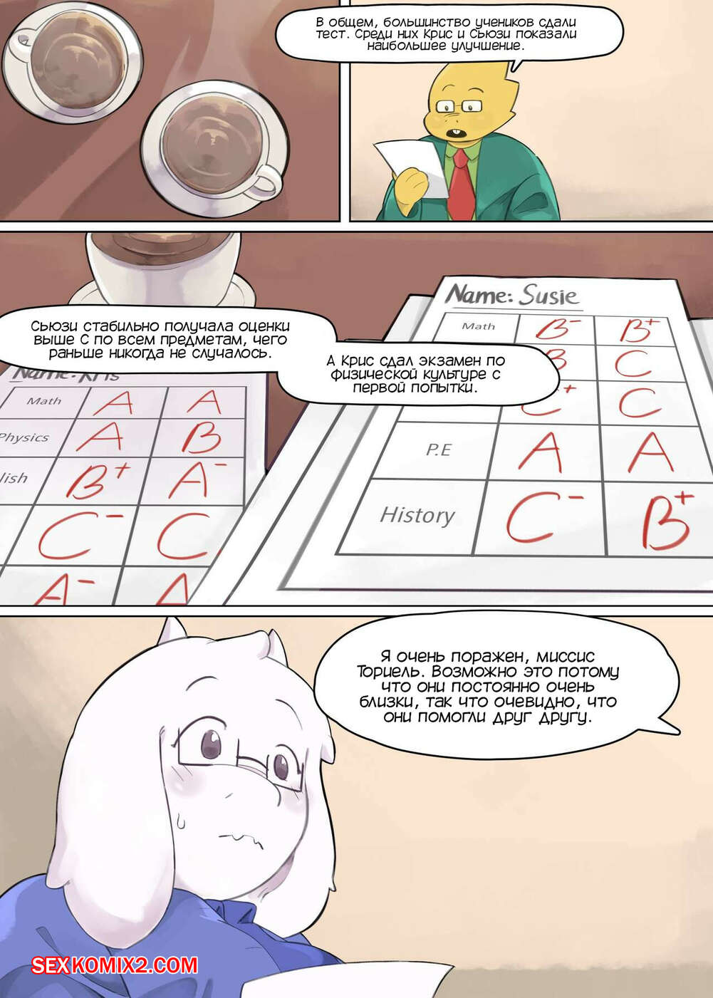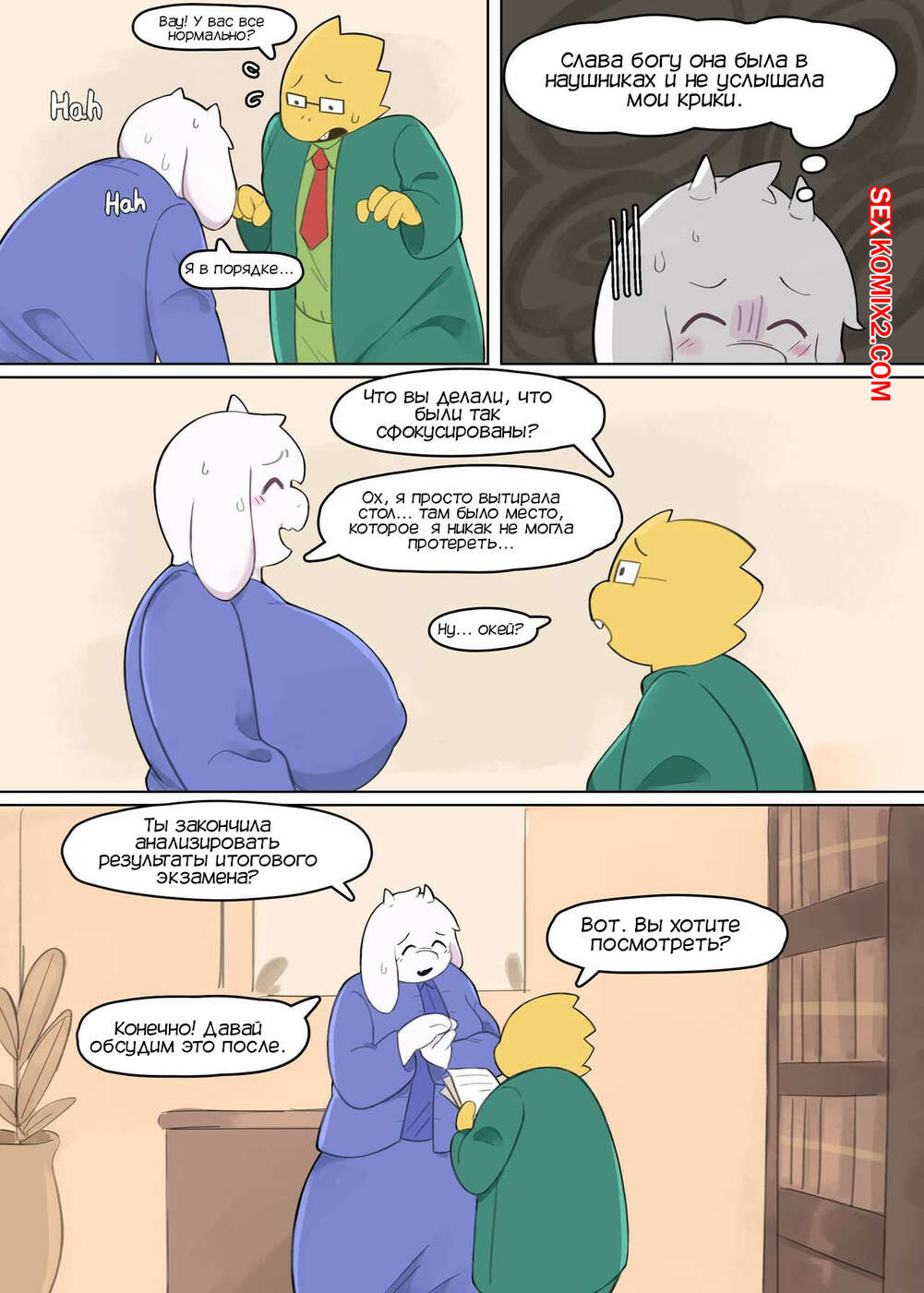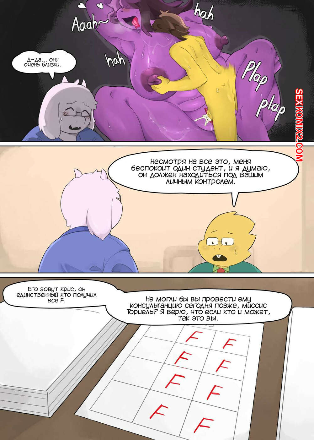 Порно комикс Undertale. Любимый ученик. Favourite student. Thenewpassion Горячая красотка постоянно возбуждена на работе и хочет трахаться. Милфа пригласила к себе в кабинет своего любимого ученика, чтобы повеселиться с ним и потрахаться.