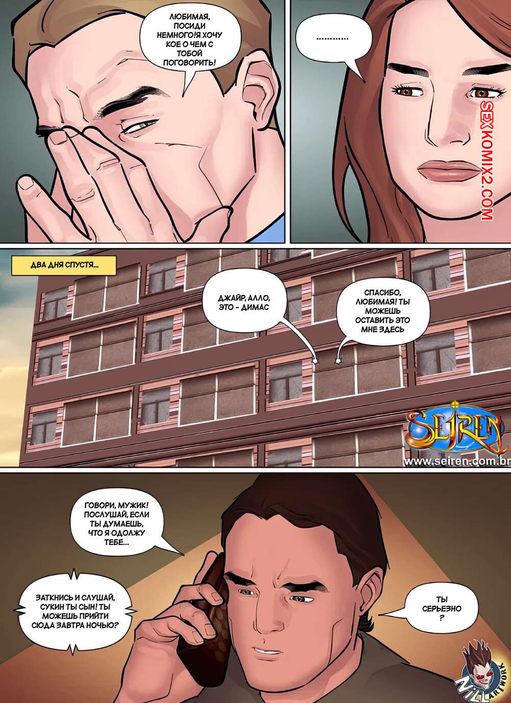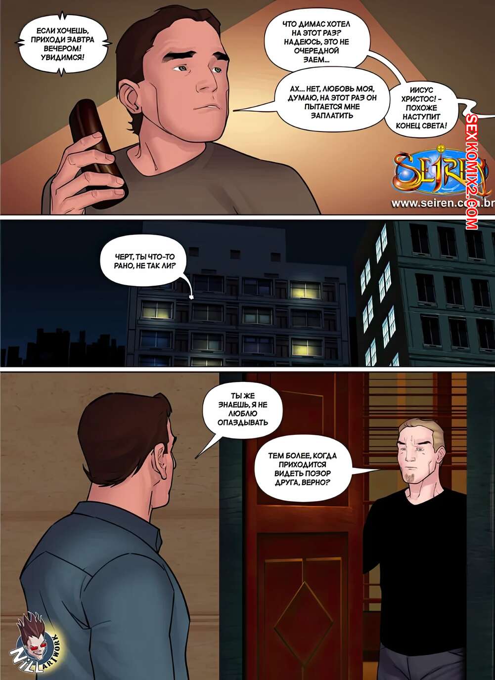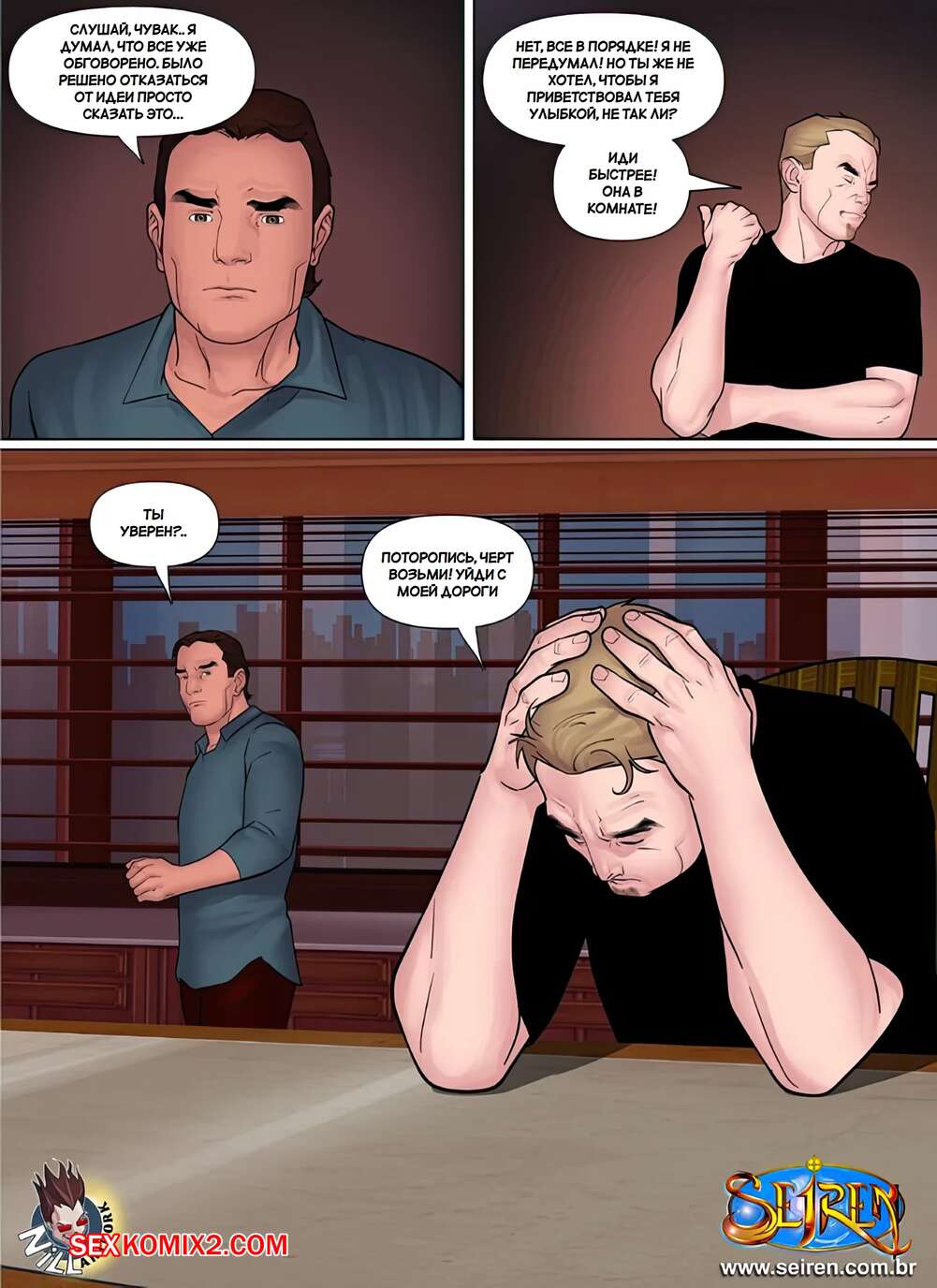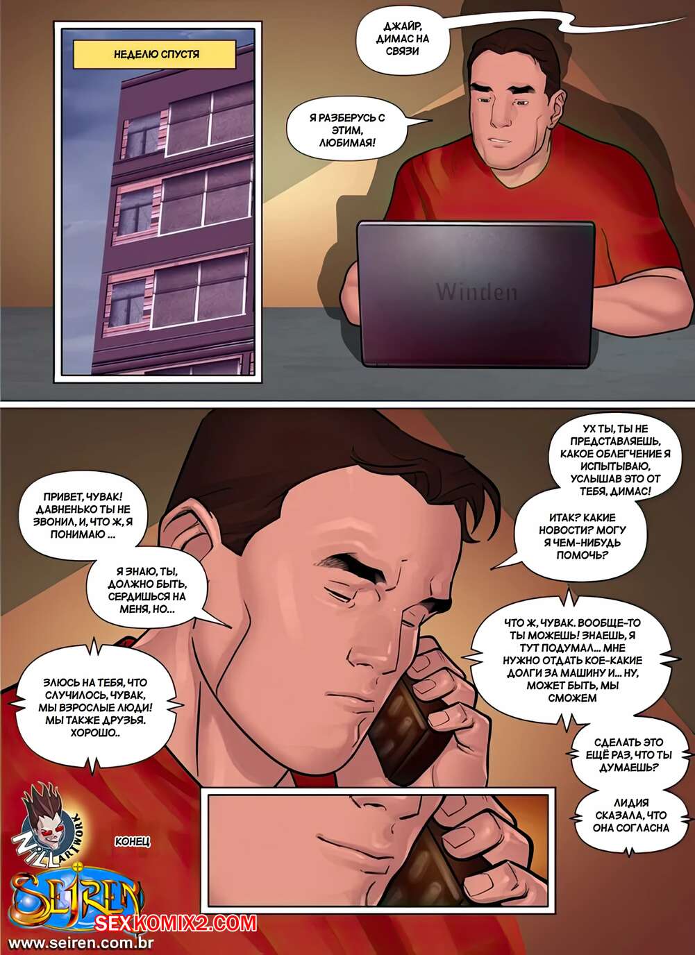 Порно комикс Дискредитировать. Часть 1. Discredit. Seiren. Парень задолжал деньги своему другу и они нашли способ расчитаться. Жена должника разделась перед дружем мужа и дала ему выебать свою пизденку, кончая ей в ротик.