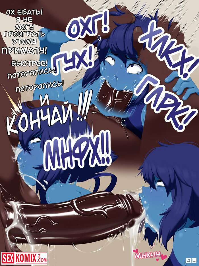 Порно комикс Ляпис-лазурит. Вселенная Стивена. Красотка с синей кожей заглатывает очень большой член в самое горло и принимает сперму во внутрь.