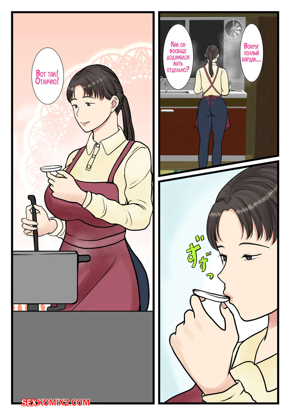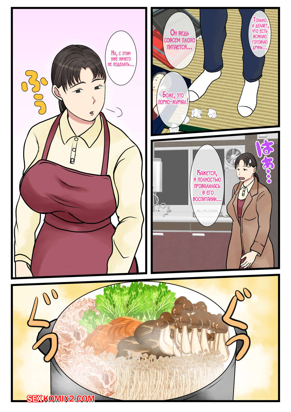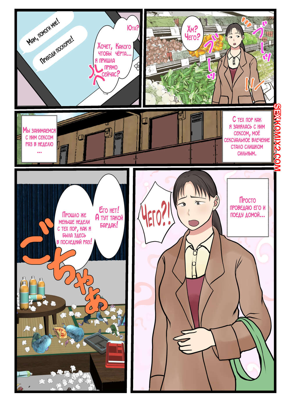 Порно комикс Я вызвал домработницу, а пришла моя мама. Часть 2. Benii Kenkyuujo Сисястая брюнетка милфа была очень возбуждена и решила повеселиться со своим сыном. Красотка разделась и отсосала большой хуй парня, после чего дала ему себя выебать и кончить в нее.