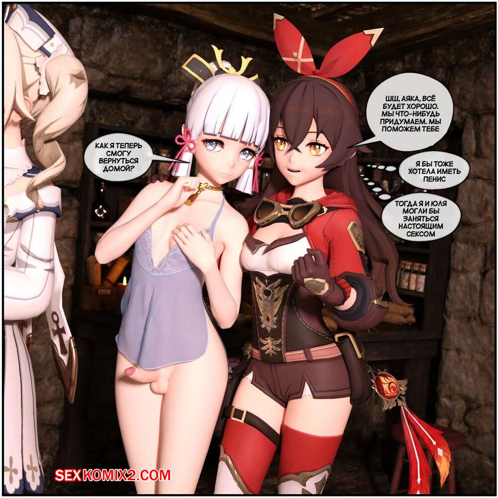 Порно комикс Genshin Impact. Звездный ритуал. The Star Ritual. DarkFaust В результате ритуала у двух горячих красоток появились большие члены и они решили испробовать их на деле со своими подругами. Красотки разделись и стали сосать большие хуи своих подружек, после чего дали им себя выебать.