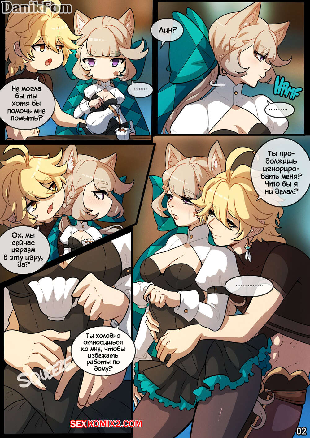 Порно комикс Genshin Impact. Переход в Режим Объятий. Entering Cuddle Mode. Kinkymation Парень с девушкой были очень возбуждены и решили повеселиться. Красотка разделась и отсосала большой хуй своего дружка, после чего дала ему выебать свою пизденку и кончить в нее.