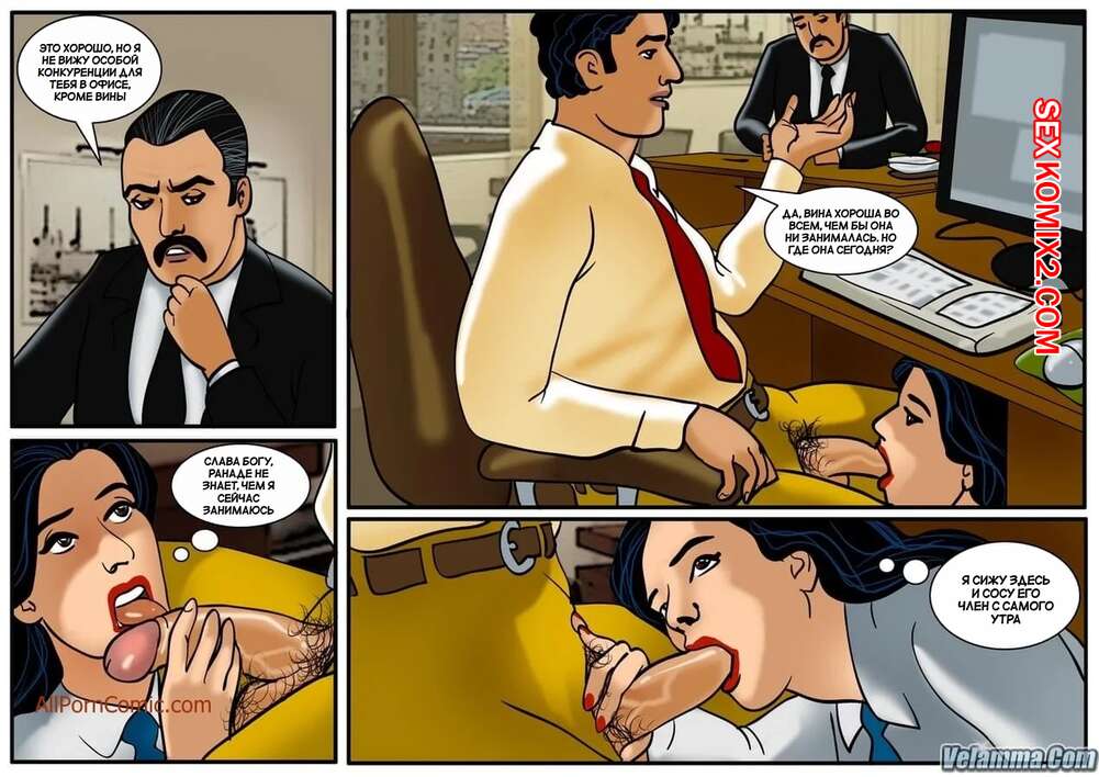 Порно комикс Веена. Часть 7. Veena. Velamma Сисястая милфа пришла на работу в сексуальном наряде и решила повеселиться со своим боссом. Красотка разделась и отсосала большой хуй парня, после чего дала ему выебать свою пизденку.