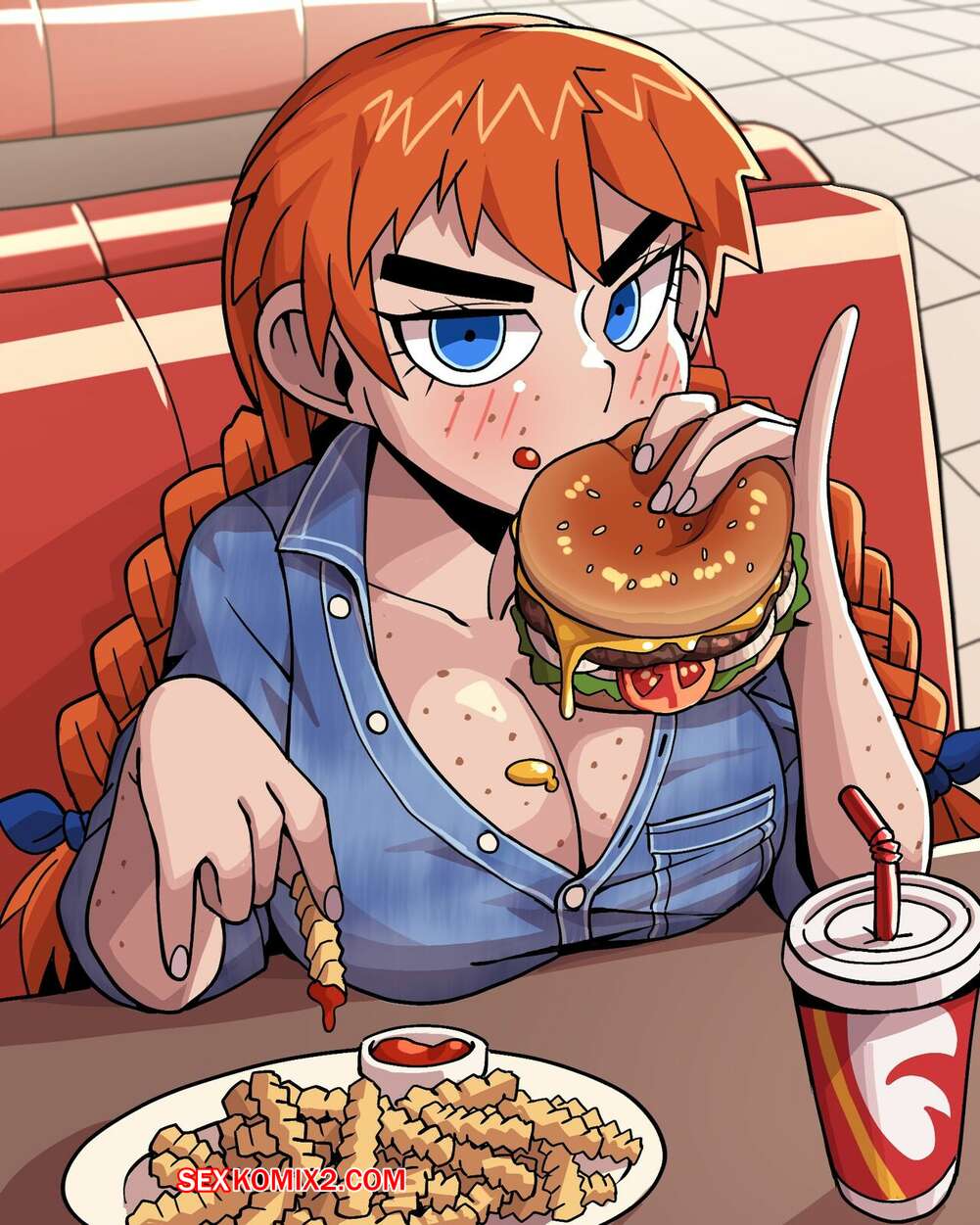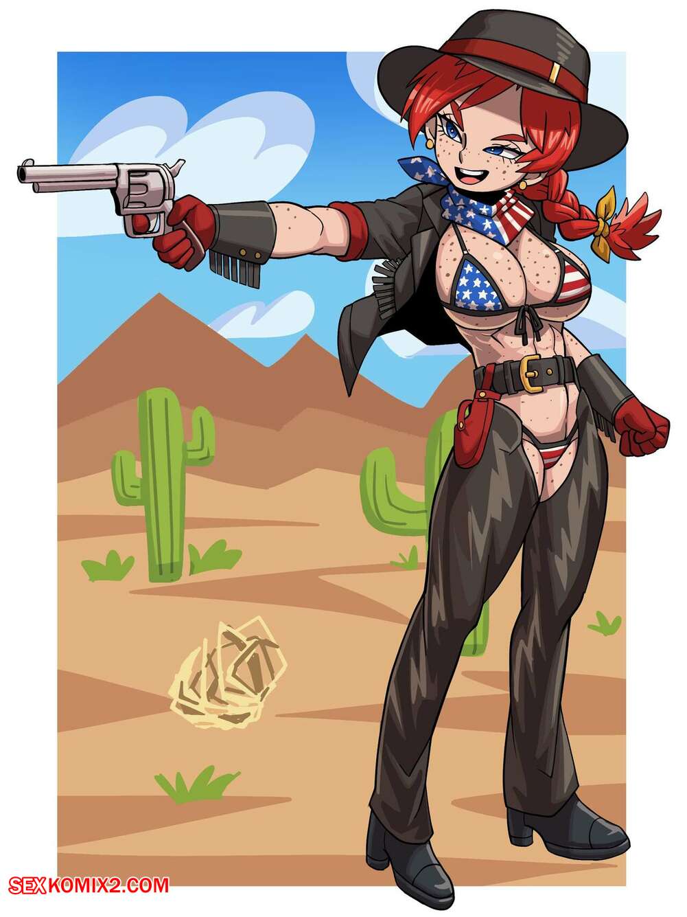 Порно комикс Cowgirls. BBTAN. Подборка артов и картинок с горячей рыжей красоткой. Девушка раздевается и демонстрирует свои шикарное тело, выставляя напоказ свои большие сиськи и сочную задницу.