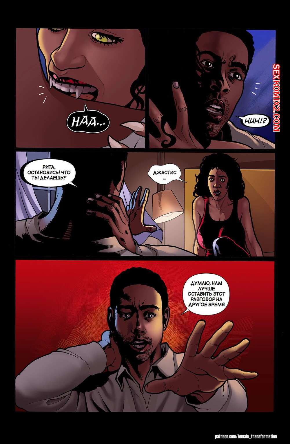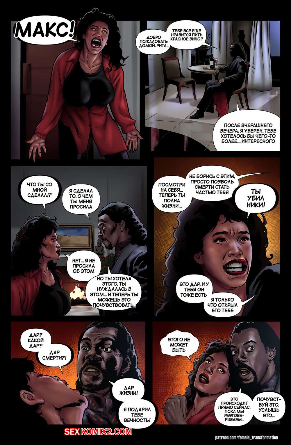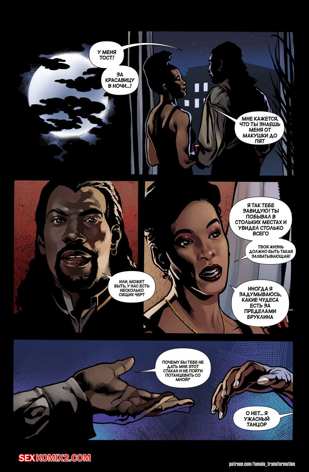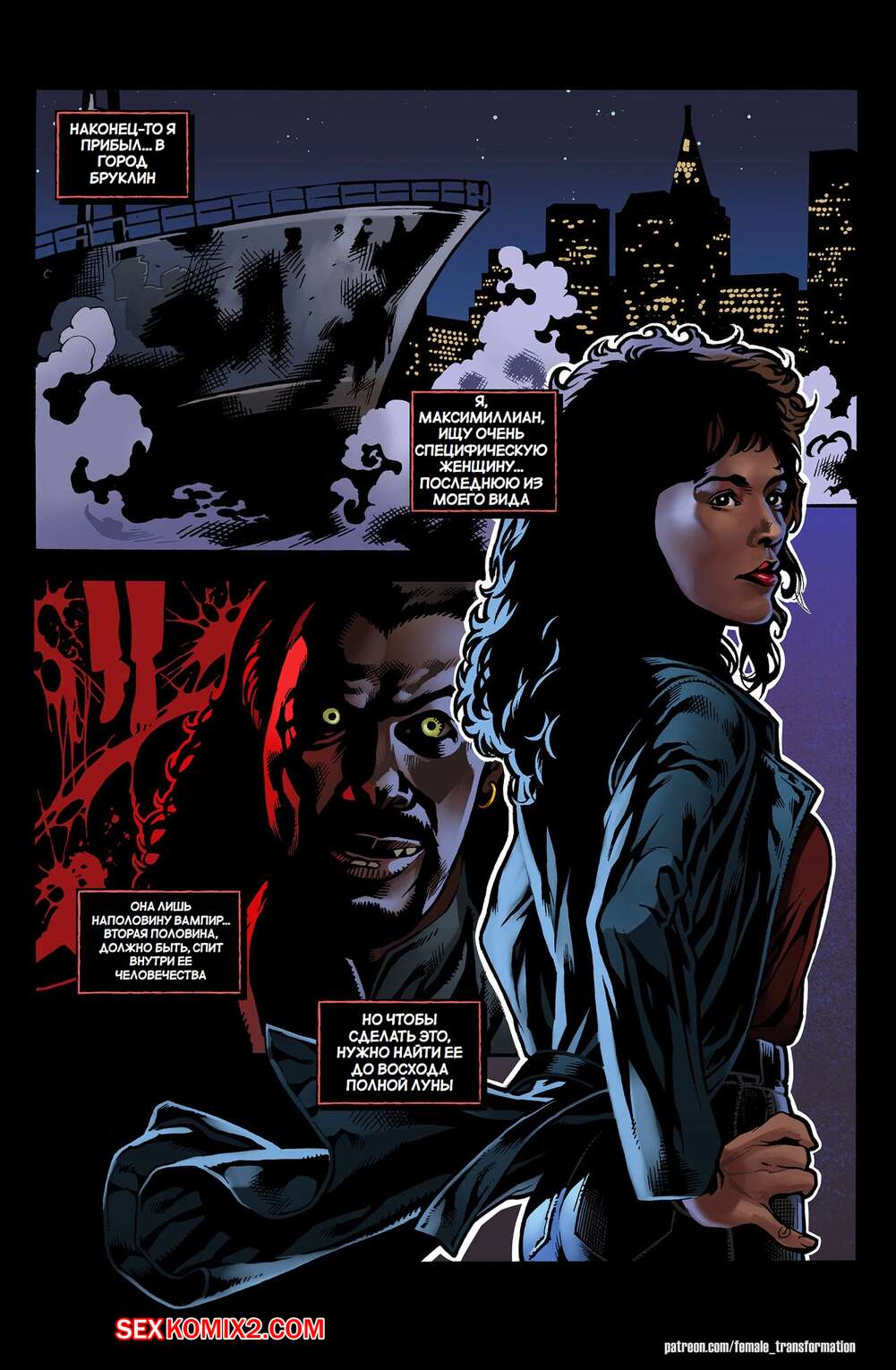 Порно комикс Королева Бруклина. Часть 1. Queen of Brooklyn. Locofuria, Mister D. Парень вампир был очень возбужден и решил повеселиться с сексуальной брюнеткой милфой. Он раздел красотку и стал ласкать ее, после чего хорошенько выебал ее пизденку.